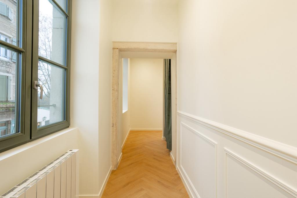 AMILTONE IMMOBILIER vous propose à la vente un très bel appartement idéalement situé à 2 pas du port et à seulement 10 minutes à pieds du centre ville de Belleville. Au 1er étage (sans ascenseur) d’une superbe batisse en pierres offrant une vue imprenable sur la Saone, cet appartement a été entièrement rénové avec de beaux matériaux. D’environ 71 m2, il se compose d’un hall d’entrée avec placard, d’une pièce de vie spacieuse et lumineuse avec une cuisine ouverte équipée, de deux chambres, d’une salle d’eau et d’un WC séparé. Une place de stationnement privative complète ce bien. Chauffage individuel électrique (caloporteurs) , DPE D , GES : B. Bien en copropriété (15 lots d’habitation); Charges mensuelles : 50 EUR. Coup de coeur assuré, pour plus d’informations, contactez sans plus attendre Marie GAUTHIER au 06 60 59 59 80 Statut Agent immobilier titulaire de la carte professionnelle No 03723 délivrée par la CCI de l’Ain