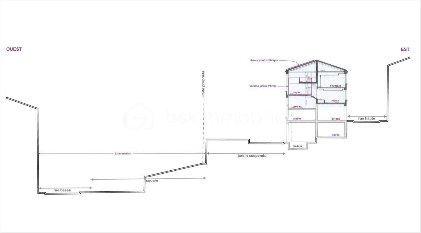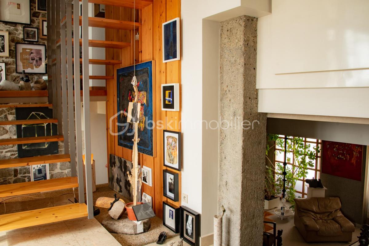 LA DESCRIPTION Cette passementerie du 19e siècle est habitée par l’architecte -retraité et collectionneur- qui l’a réhabilitée en 1980 en la dotant d’une piscine intérieure, de bureaux et de son habitation. Un garage de plus de trois mètres de haut permet de stationner 3 à 4 véhicules et surmonte de vastes volumes dont une cave à vins en terre battue. Cet atelier résidentialisé occupe la majeure partie (53%) d’une copropriété (3 copropriétaires) et se développe sur plusieurs niveaux avec accès indépendants. L’entrée principale ouvre sur les espaces de vie en double-hauteur – salle à manger, un jardin d’hiver- et une cuisine qui offrent une vue généreuse sur le panorama stéphanois autant naturel qu’urbain. Par un escalier suspendu bois-métal, le premier demi-niveau dessert deux chambres dotées d’une salle d’eau, d’une buanderie et un dressing, puis l’espace nuit composé d’un bureau en surplomb de la salle-à-manger et une suite parentale dotée de sa salle de bain à triple orientation. Une demi-volée de marches descend au chaleureux salon doté d’une cheminée et d’une bibliothèque intégrée. En contrebas, l’atelier de l’architecte rejoint l’escalier laqué blanc qui dessert une chambre d’amis puis la piscine intérieure avec sa plage, son alcôve-douche et son accès au jardin paysager privatif. Surmontée d’un plateau aménageable, la salle-à-manger d’été – quasi troglodyte à la cheminée ancestrale et ouverte sur le bassin à tête de faune- promet d’inoubliables soirées conviviales. QUELQUES DONNEES : La surface de 450 m2 se décompose ainsi : 280 m2 : surface habitable 095 m2 : surface aménageable 075 m2 : surface des annexes (Surface “loi Carrez” pour mémoire 308 m2) Sur le plan technique et qualitatif : Haut niveau de prestations tant de mise en œuvre que de produits. Chauffage hybride au sol et panneaux. Production thermodynamique d’ECS. Capteur photovoltaïque dont la production annuelle compense les couts de consommations. Cheminée à foyer fermé DONBAR Cuisine équipée GAGUENAU Sanitaires et robinetteries IDEAL STANDARD. En termes financiers : L’avantage de la vente en démembrement pour 600 000 € : Décote de démembrement : 90 000 euros (15 % de la valeur indicative) Nue-propriété : 450 000 € (75 % de la valeur indicative) Droit d’Usage et d’Habitation sur 8 ans de 150 000 euros L’acquisition ferme est possible pour un montant de 690 000 euros LES ATOUTS L’aménagement intérieur de ce loft – aidé en cela par les grandes baies, témoins du passé proto-industriel du lieu et la verrière zénithale de l’entrée – tire le meilleur parti de grands volumes requis par les hauts métiers à tisser, diversifie les usages et offre un entrelacs savant de percées visuelles, une multiplicité de promenades intérieurs, de jeux de lumières naturelles multiples et variées au gré des journées et des saisons. Par la mise en œuvre d’une palette restreinte de matériaux nobles l’architecte a su créer une atmosphère authentique et chaleureuse. Les parois murales alternent les aplats parfaits d’un béton bouchardé d’agrégats locaux de grès houiller, de bois blond et d’enduit au grain fin, contrastent avec les plafonds laqués 7 couches reflétant subtilement la lumière. Les sols de pierre de lune ou de sisal accompagnent le continuum spatial avec fluidité. Il ne sera possible de décrire ici toutes les subtilités atemporelles de cette architecture raffinée autant que discrète. Réunie au fil du temps en cet écrin, la collection de 450 œuvres d’art de l’École Stéphanoise et du mouvement supports-surfaces dont les pièces maîtresses sont issues de la galerie internationale et néanmoins stéphanoise ‘Ceysson & Bénétière’ est également disponible à la vente. Enfin, cet immeuble au panorama sanctuarisé du secteur prisé des hauts du Crêt de Roc est à dix minutes à pied de la gare de Châteaucreux et seulement cinq de l’hyper centre-ville disposant ainsi de tous les commerces et commodités de proximité. Cette annonce référence 286995 vous est présentée par votre agent commercial BSK Immobilier THIERRY BESSON (EI) immatriculé au RSAC de SAINT-ETIENNE (42000) sous le numéro 33148588800126. Prix du bien : 450 000,00 € Les honoraires d’agence sont à la charge du vendeur. A propos de la copropriété : Procédure en cours. Nombre de lots : 16 Charges prévisionnelles annuelles : 1 004,00 € A propos des performances énergétiques : Date de réalisation du diagnostic énergétique : 21/03/2023 Score DPE : 138 kWhEP/m²/an Score GES : 8 kgepCO2/m²/an Montant estimé des dépenses annuelles d’énergie pour un usage standard : entre 2560.00 € et 3530.00 € par an. Prix moyens des énergies indexés sur l’année 2023 (abonnements compris). Les informations sur les risques auxquels ce bien est exposé sont disponibles sur le site Géorisques : www.georisques.gouv.fr