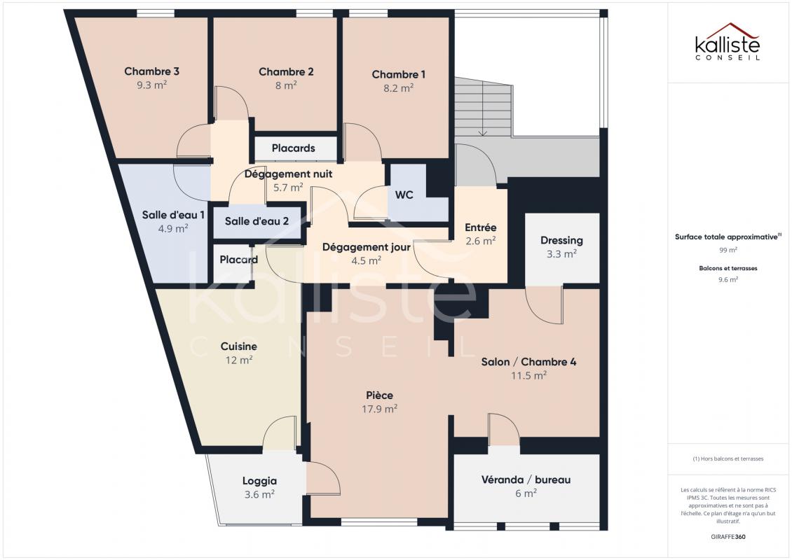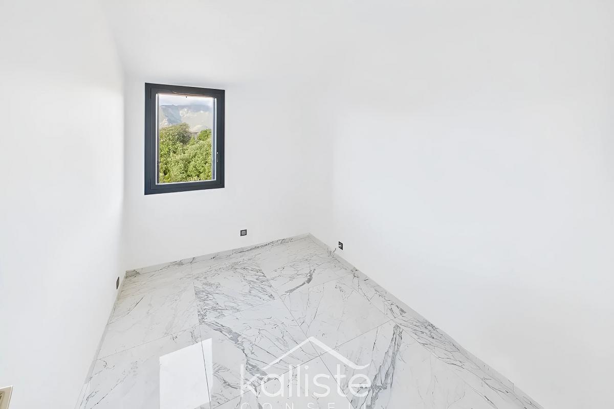 Kalliste Conseil a le plaisir de vous présenter ce très bel appartement F5 de 90 m², situé au dernier étage (3ᵉ) d’une résidence soignée à Cauro, charmante commune à seulement 17 minutes d’Ajaccio et des plages du golfe. À proximité immédiate des écoles, de la poste, des petits commerces et restaurants, cet environnement combine parfaitement confort de vie et authenticité villageoise. Vous profiterez de promenades panoramiques et d’un cadre de vie paisible, ouvert sur la mer et les montagnes, dans un secteur recherché pour sa qualité de vie et son accessibilité. Un intérieur soigné et lumineux Entièrement rénové avec goût, cet appartement conjugue charme, modernité et confort. La pièce de vie offre un espace très agréable, composé d’un salon chaleureux et d’un séjour distinct, propices à la convivialité familiale. La cuisine, moderne, aménagée et entièrement équipée, répond aux exigences des acheteurs d’aujourd’hui : esthétique, fonctionnelle et prête à vivre. La distribution intérieure sépare parfaitement les espaces jour et nuit : trois chambres, deux salles de douche, toilettes séparées, et des rangement bien pensés. Confort et qualité de vie Sa situation en dernier étage lui confère une luminosité naturelle constante et une vue dégagée, tout en garantissant calme et intimité. Le poêle à granulés et la climatisation réversible assurent un confort thermique optimal en toutes saisons, tout en maîtrisant la consommation énergétique. En annexe, une grande cave saine permet de stocker ou d’aménager un espace loisirs, et le grand parking privatif commun facilite le stationnement au quotidien. Un emplacement recherché Situé dans un environnement paisible, à proximité immédiate du centre du village, et des axes principaux, ce bien constitue une opportunité rare pour les familles ou actifs souhaitant conjuguer cadre de vie, confort et accessibilité. Les points forts – L’école est à 1 minute, sans traverser la route ! – Appartement rénové aux standards actuels avec finitions soignées – Cuisine moderne et entièrement équipée – Deux salles de douche modernes + wc séparé – Pièces de vie au sud, chambres au nord – Climatisation réversible + poêle à granulés – Grande CAVE privative – Grand parking avec systématiquement des places disponibles, y compris pour les visiteurs. – Dernier étage, lumineux et calme – Seulement 735€ de taxe foncière et 35€ de charges/mois (422€/an)