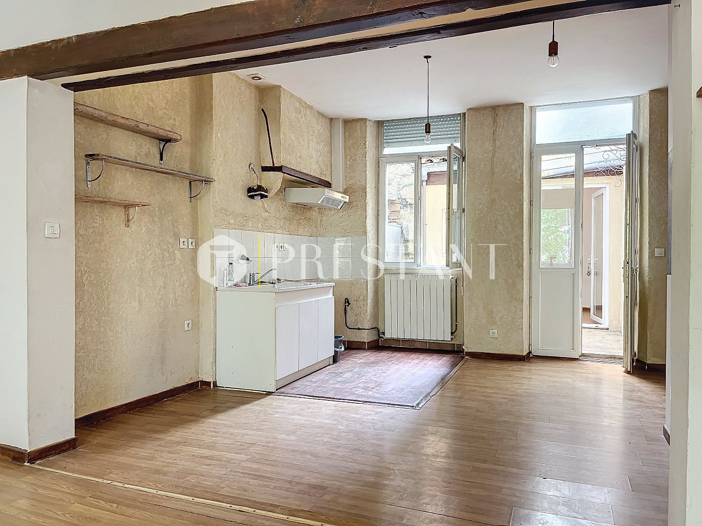 Cet appartement de type T2, possiblement T3, est situé au premier étage d’un bel immeuble en pierre au coeur du quartier prisé de Sainte Croix à Bordeaux. Bénéficiant d’une vue imprenable et dégagée, l’immeuble se trouve à proximité immédiate de places piétonnes avec terrasse de cafés ombragés, des quais aménagés en bord de Garonne, des commerces, des écoles, des transports en commun et de la gare SNCF. L’appartement a conservé le charme de l’ancien grâce à ses murs en pierre apparente, hauteur sous plafond, ses fenêtres à crémone et ses volets bois en persienne. D’une surface d’environ 59m², il dispose d’une entrée dégagée, un grand séjour lumineux, une cuisine avec fenêtre, une chambre, une salle d’eau avec WC et un second WC séparé. Une terrasse extérieure d’environ 6 m² ou patio au calme vient agrémenter ces belles pièces de vie. Possibilité de créer une seconde chambre avec fenêtre en aménageant astucieusement quelques cloisons. Cet appartement séduira toute personne amoureuse de la pierre et désireuse de vivre dans un quartier vivant, paisible et idéalement situé. *info investisseur: possibilité de racheter l’immeuble entier, l’annonce est disponible sur notre site internet* Gare SNCF Saint Jean à 10 minutes à pied. Ligne de BUS numéro 1, 9, 15, 16, 20, 23, 24, 31 à moins de 10 minutes à pied. PRESTANT Bordeaux Bassin – Clément Bouthier – 06 70 07 84 50 – Plus d’informations sur www.prestant.com (réf. 330592636). Les informations sur les risques auxquels ce bien est exposé sont disponibles sur le site Géorisques : www.georisques.gouv.fr. -Honoraires : 5 % TTC inclus charge acquéreur (300 000 € hors honoraires)—–