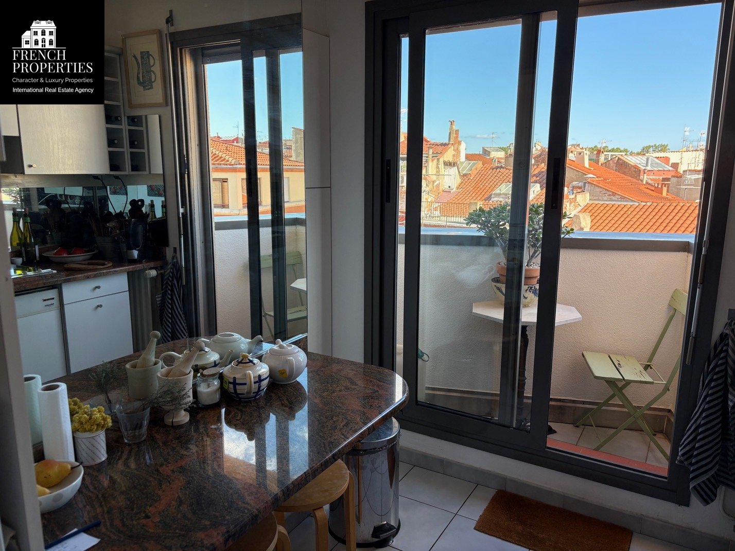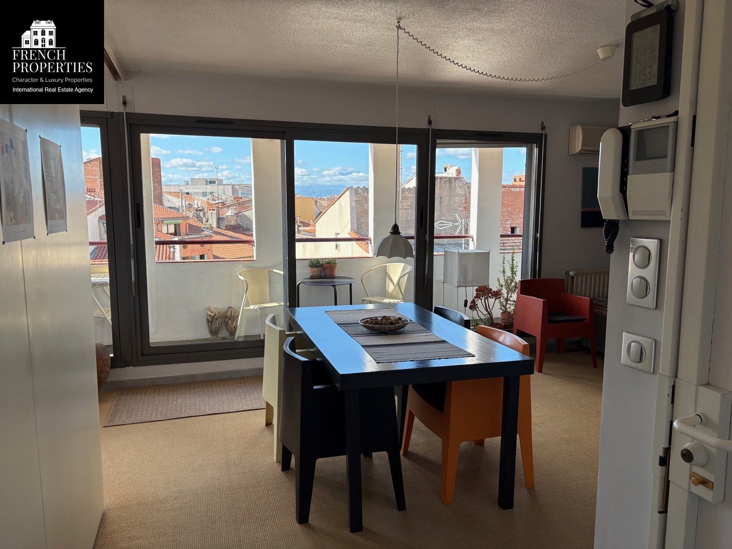Notre agence vous propose un agréable T3 avec loggia , très lumineurx au dernier niveau d’une résidence sécurisée de 05 étages avec ascenseur . Cet ensemble immobilier se situe à quelques mètres de la place République et à l’abri des nuisances sonores de l’hyper centre ville de Perpignan . La pièce de vie de environ 25m² , baignée de soleil propose une vue panoramique sur les toits Perpignanais et sur le célèbre Canigou . La cuisine indépendante, entièrement aménagée et équipée possède un petit balconnet . La configuration permet d’envisager une deuxième chambre ou bureau ou en l’état actuel une prolongation de la pièce de vie . Très belle salle de bains avec toilettes . Appartement très fonctionnel et en très bon état . Pas de travaux de rénovation à prévoir . Cet appartement peut être vendu meublé et possibilité d’acquérir un garage dans la même résidence . DPE D / 161 GES D / 30 Montant estimé des dépenses annuelles d’énergie pour un usage standard établi à partir des prix de l’énergie de l’année 2021 : entre 1 058 euros et 1 432 euros Pour visiter et vous accompagner dans votre projet, contactez Muriel ROBERT, au 06.78.11.52.31 ou, par courriel mrobert.immo@yahoo.com .