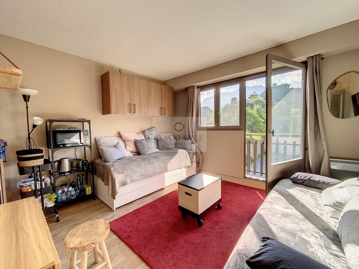 (06660) AURON STUDIO F1 RENOVE A 400m du CENTREetde laplace centrale ( église) balcon et Terrasse Sud parkingLes olympiades avec ses nouvelles entrées et parties communes rénovées vous découvrez dans une copropriété recherchée avec gardien l’ opportunité d’acquérir un studio rénové à Auron, situé à seulement deux minutes à pied du centre de la station. Avec ses rénovations de qualité, ses équipements modernes et sa vue imprenable, cet appartement d’angle pour 4 couchages est un véritable bijou. on est en étage avec ascenseur. Vous serez immédiatement séduit par l’entrée avec son dressing, un espace pratique pour ranger vos affaires de ski et vos vêtements. Le salon, chaleureux et confortable, vue dégagée sur les montagnes et les pistes depuis le balconnet et la terrasse adjacente qui peut accueillir jusqu’à 4/5 personnes sans aucun vis-à-vis., un espace convivial, environnement calme et ensoleillé, ce studio bénéficie d’une vue panoramique sur les montagnes et les pistes exposition sud-ouest. La cuisine aménagée et équipée est un véritable atout de ce studio. Dotée d’une hotte, d’une plaque de cuisson, d’un réfrigérateur et d’un four, elle répondra à tous vos besoins culinaires La salle d’eau moderne est équipée d’un WC, d’un lave-linge et d’un sèche-linge, offrant ainsi un confort absolu et une praticité indéniable. Les fenêtres à double vitrage et les stores électriques garantissent une isolation optimale, vous permettant de profiter d’un environnement paisible et calme. De plus, cet appartement est doté d’un parking privé extérieur en sus du prix et 2 casiers à skis sont également inclus, offrant un espace de rangement supplémentaire pour votre équipement de glisse. Sa localisation parfaite, ses rénovations de qualité, ses équipements modernes et sa vue imprenable en font un bien immobilier sans aucun travaux. peut être vendu meublé. Idéal pour résidence secondaire ou investissement locatif. .60 lots de copropriété – Taxe F427.€ – Charges 75€ /mois – Surface CARREZ : 20.51 m² / Hab 22.70 .m² terrasse 6.59m2- Dpe 362/. 11(E/B) Honoraires à la charge du vendeur. Aucune connaissance de procédures en cours dans la copropriété. Les informations sur les risques auxquels ce bien est exposé sont disponibles sur le site Géorisques http://www.georisques.gouv.fr Toute l’équipe vous remercie. Plaquette de présentation complète & Visite virtuelle commentée sur demande.