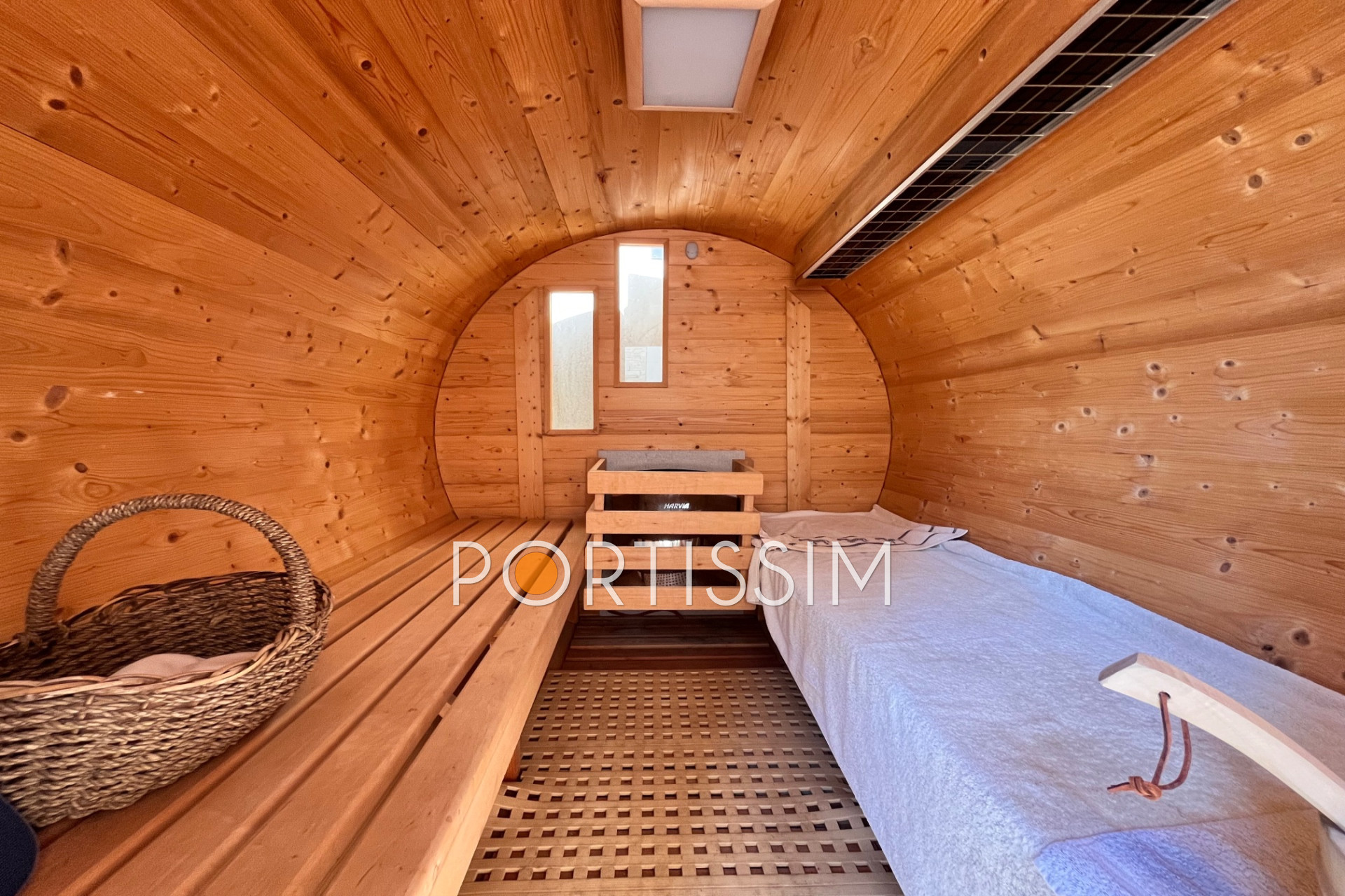 Vous trouverez une belle terrasse, avec sa salle à manger d’été, espace bien être avec son sauna, douche et solarium.