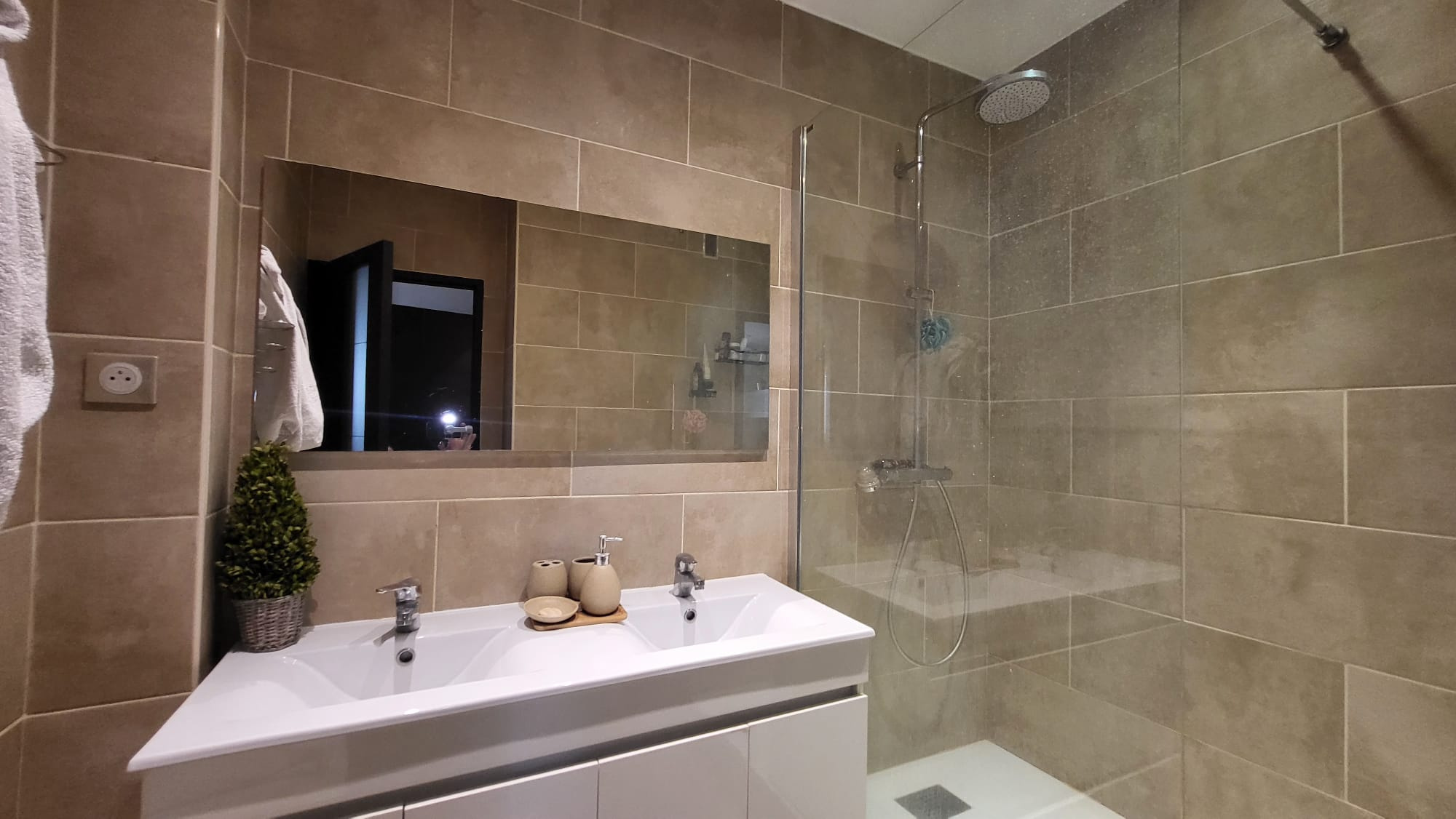 La cuisine, véritable espace de convivialité, est équipée avec des appareils haut de gamme, idéale pour les amateurs de gastronomie. La chambre lumineuse et bien agencée invite à la détente, tandis que la salle de bains contemporaine apporte une touche de raffinement.