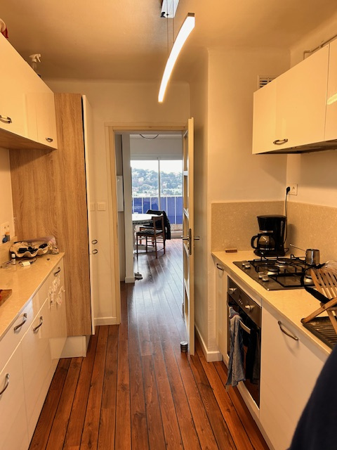 Beau T3 en dernier étage refait à Toulon, quartier Serinette. Il offre une entrée avec porte blindée, un très beau parquet teck style bateau, un salon donnant sur une belle terrasse vue mer au loin plein sud, une très belle cuisine équipée avec une arrière cuisine avec une belle vue dans les pins, 2 chambres avec chacune un grand placard, un wc séparé avec lave-mains, une salle de douche.