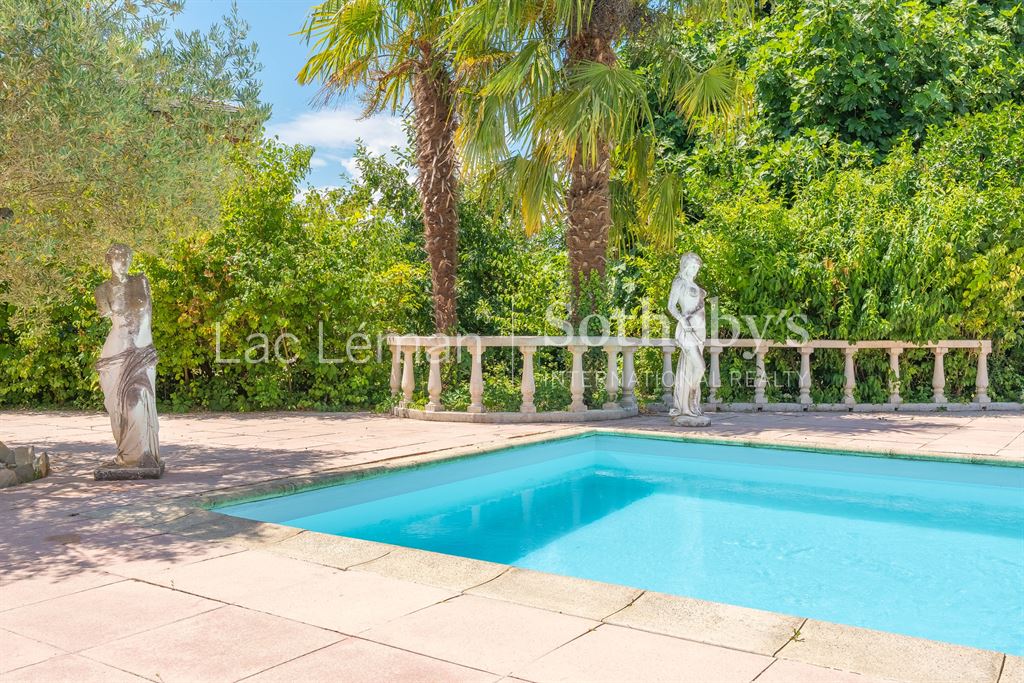 Idéalement située à seulement 25 km du centre de Genève (pont du Mont-Blanc) et à quelques pas du port d’Yvoire, cette élégante villa contemporaine de style néo-provençal, édifiée en 2001 et entièrement rénovée avec des prestations de qualité, séduit par son charme et sa modernité.