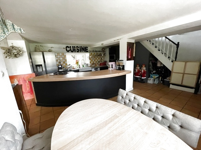 La maison de 180m2 habitables propose en RdJ un joli salon avec plafond ‘cathédrale’ et poêle à bois, cuisine indépendante séparée par une double porte coulissante avec verrière. La cuisine est équipée et possède un grand îlot et une zone repas avec vue sur le jardin. Enfin, sous l’escalier d’accès au 1er étage, une SdE d’appoint avec WC1. Au 1er étage, un joli dégagement dessert 3 belles et vastes chambres dont une est pourvue d’un balcon couvert très agréable, une grande SdB, WC2 indépendants et une grande pièce servant actuellement de bureau/bibliothèque est attenante à l’une des chambres. Selon les projets de chacun, cette dernière pourrait être transformée en 4ème chambre, immense dressing et SdB privative, voire même en logement indépendant avec accès individuel. Combles partiels aménageables en sus. Un garage et deux caves complètent le RdJ pour une superficie de 45m2 env. non considérée dans la superficie ‘habitable’ actuelle.