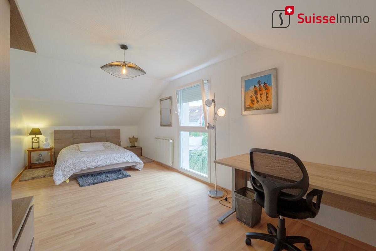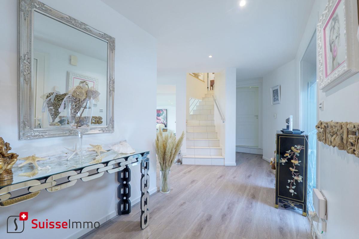 DASLE – BEAUCOURT – Encore un bien d’exception en exclusivité Suisse Immo Maison d’architecte GIGON de 207 m2 habitables sur 10 ares de terrain. Vue à couper le souffle, en fond d’impasse. Les + : – DPE C / Chaudière gaz à condensation neuve (septembre 2025) – 207,6 m2 / 5 chambres dont une suite parentale en RDC – BSO dans les pièces de vie – Sols en marbre blanc – Garage double – Portail auto porté – Moteurs garage et portail neufs – Impôts fonciers 1083 euros Au RDC : – Hall – Pièce de vie de 64 m2 – Véranda – Suite parentale (baignoire, WC?) – Chambre / bureau (actuellement dressing) – Wc avec lave mains A l’étage : – mezzanine avec vide sur séjour arrondi – 3 Chambres – Salle d’eau – Dressing – Débarras Double garage, chaufferie. Assainissement conforme. Pour tout renseignement Nicolas PACQUOT – Suisse Immo?? 06 52 61 85 85
