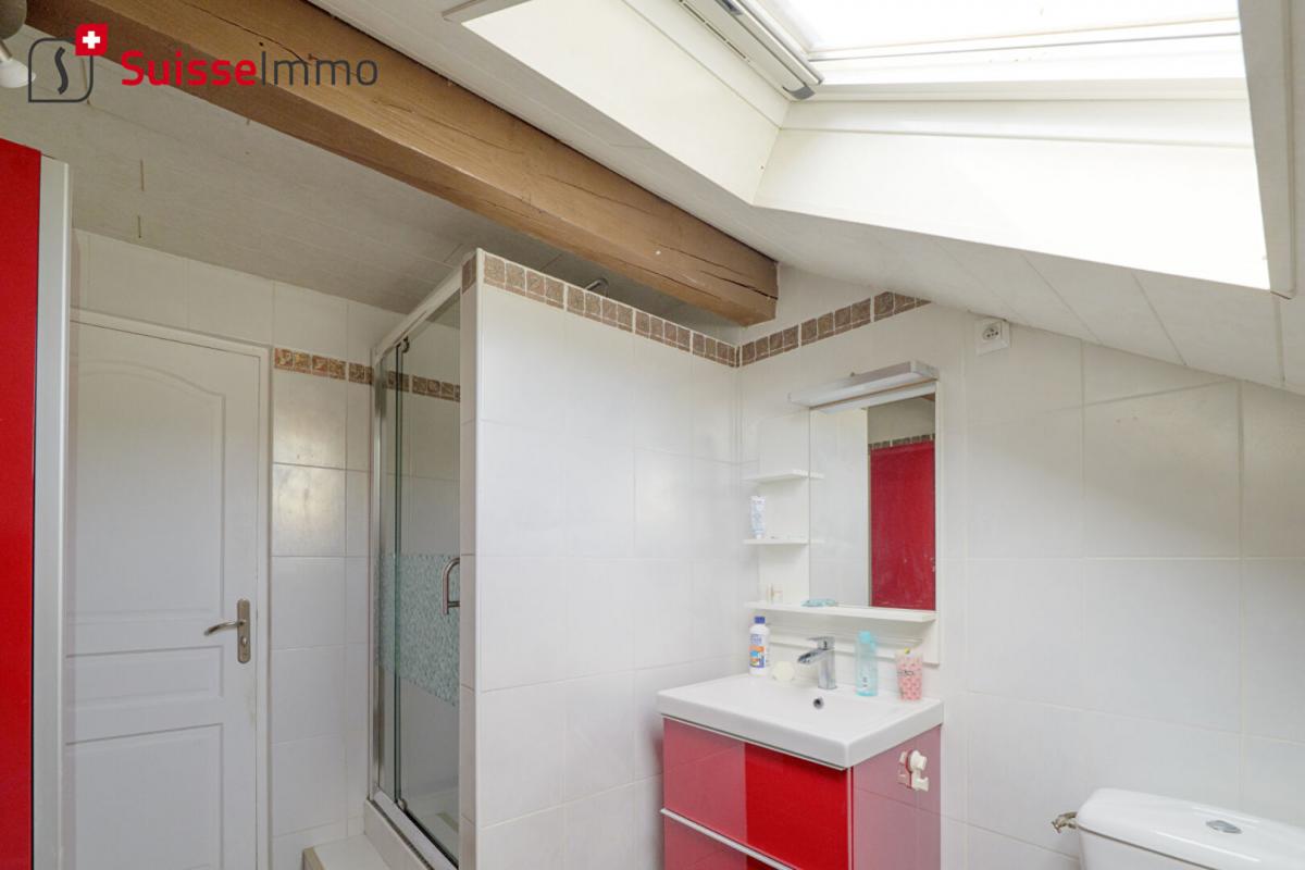 BELLE MAISON FAMILIALE RENOVEE – 9 pièces située dans une impasse – sans vis à vis – vue dégagée à 10 minutes de la frontière Suisse Dans un cadre verdoyant venez découvrir cette maison cossue construite sur sous-sol – composée de 5 vastes chambres – bénéficie d’un large potentiel d’aménagement – idéale pour une famille RDC : -Salon séjour -Cuisine -3 grandes chambres dont 2 en enfilade -WC -Salle d’eau Étage : -Cuisine -Cellier -Pièce de vie -2 chambres -Salle d’eau avec WC Sous sol : -Buanderie -2 caves P-lus de garage / cuisine d’été -Atelier -Stockage bois Terrain : 7 ares Jardin arboré Chalet de jardin Chauffage : Fioul + poêle à bois Adoucisseur DPE D Fenêtres PVC volets roulants manuels Carport