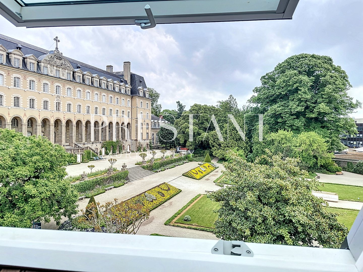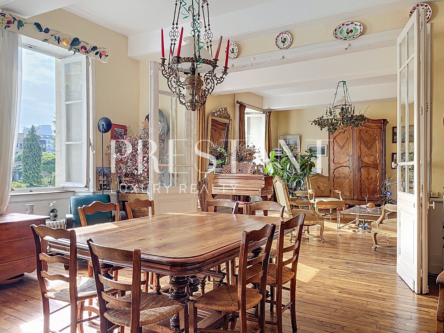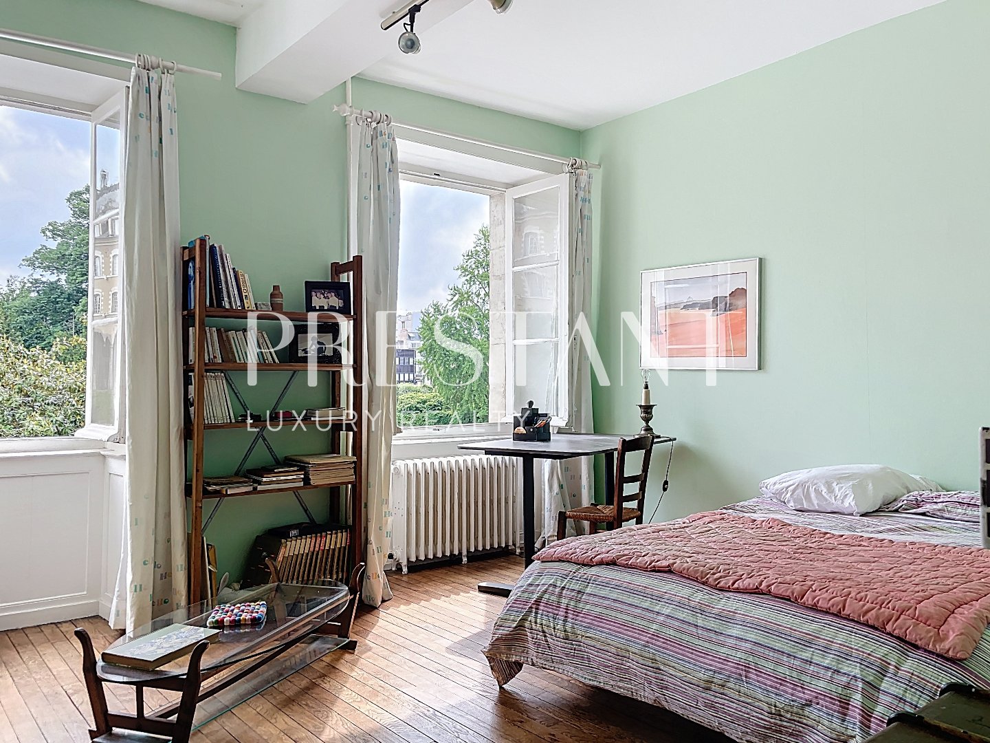 À vendre : hôtel particulier avec appartement indépendant – Rennes hypercentre Situé en plein coeur de Rennes, cet hôtel particulier de charme offre un cadre de vie rare, alliant cachet historique, volumes généreux et emplacement privilégié. À proximité immédiate de toutes les commodités (commerces, écoles, transports), ce bien singulier conviendra autant à une grande famille, à une profession libérale, qu’à un projet de bureaux professionnels haut de gamme. Derrière une façade discrète, une cour pavée privée accueille les visiteurs dans un cadre paisible, idéal pour stationner des vélos, partager un repas ou simplement profiter du calme en plein centre-ville. Le rez-de-chaussée se compose de deux espaces distincts : Un hall d’entrée avec rangements, WC invités, buanderie et une chambre avec salle d’eau. Un appartement indépendant comprenant séjour avec cuisine ouverte, une chambre et une salle de bains. Cet espace, avec accès autonome, se loue très bien en courte durée (type Airbnb ou location meublée), générant un revenu complémentaire confortable et régulier. Un bel escalier ancien en bois avec rampe en fer forgé dessert les étages supérieurs : 1er étage : cuisine traversante avec cheminée, et double séjour de 60 m² (salle à manger et grand salon avec cheminée en marbre, parquet ancien, boiseries, belle hauteur sous plafond). 2e étage : suite parentale avec double exposition et vue dégagée sur un parc, deux autres grandes chambres, salle de bains et salle deau. Dernier étage : grenier partiellement aménagé avec deux chambres et une grande pièce à finir selon vos besoins (bureau, salle de jeux, studio…). Une cave complète ce bien. Parquets d’origine, charme architectural, lumière naturelle et emplacement premium : cet hôtel particulier à Rennes centre est une opportunité rare, que ce soit pour un usage familial, une activité professionnelle ou un investissement locatif avec rendement. Hôtel particulier à vendre Rennes centre – idéal famille, bureaux, profession libérale, revenus locatifs.