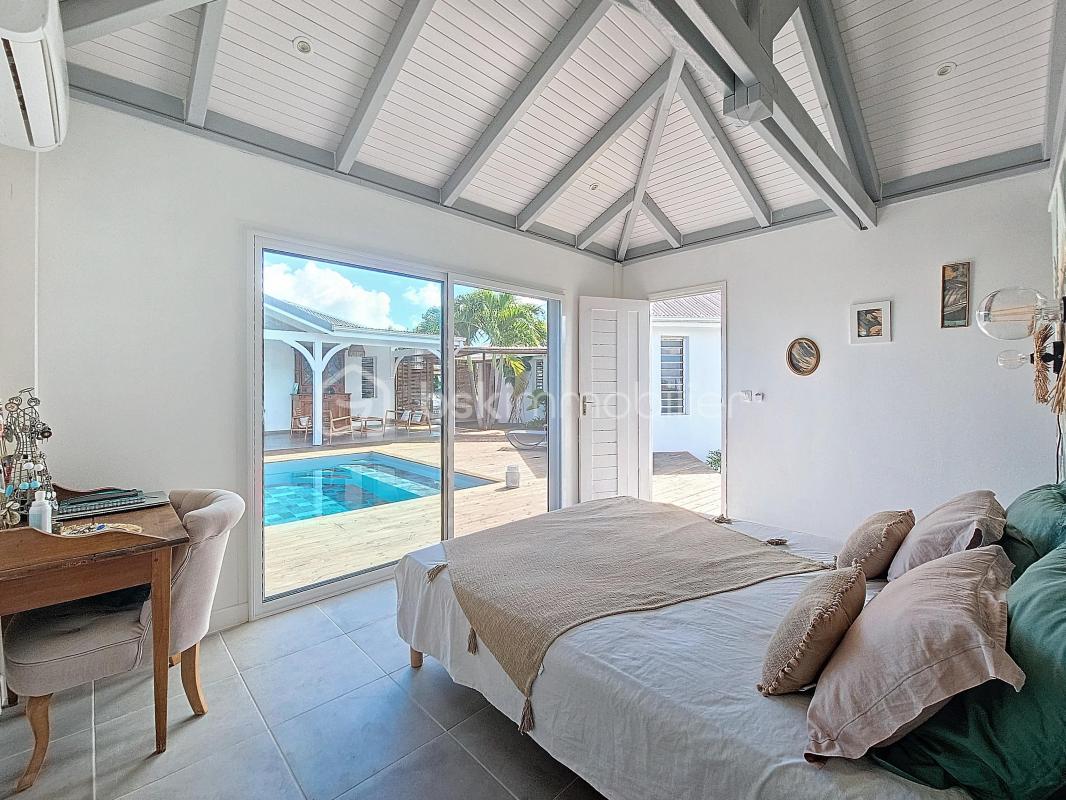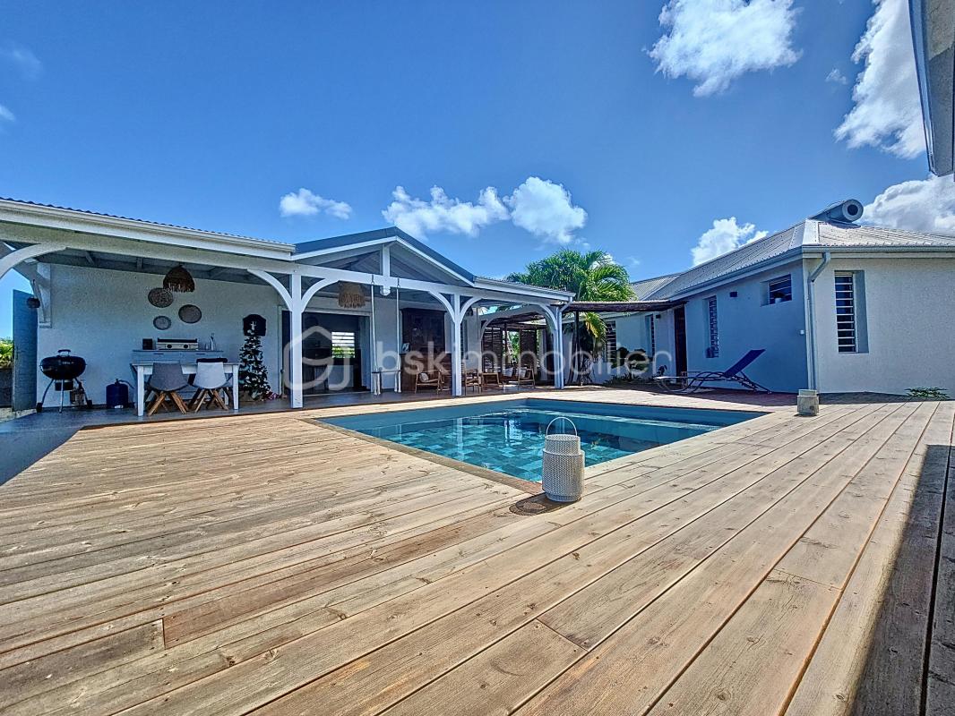 EXCLUSIVITE ! Coup de coeur assuré pour cette villa contemporaine offrant de beaux volumes d’une surface habitable de 119 m2 (surface utile 160 m2) édifiée de plain-pied sur une parcelle de 1543 m2. A seulement 5 minutes des commodités du centre-ville et de la plage des Raisins Clairs, au calme elle bénéficie d’un environnement idéal. De construction atypique, elle se compose de 3 modules – le premier est un espace pièce à vivre de 40 m2 avec son grand salon et sa cuisine ouverte équipée moderne , un toilette invité, un cellier extérieur. – Empruntez le patio et vous accédez au second module offrant deux grandes suites parentales climatisées avec douche à l’italienne, dressing et toilettes. – Enfin, le troisième espace bénéficiant d’une vue directe avec ses baies vitrées sur la piscine est une troisième suite parentale climatisée avec son dressing, sa salle d’eau douche à l’italienne et toilettes. Vous profiterez également d’une grande terrasse et sa piscine au sel de dimension 4×4 (achevée il y a un an) avec son liner pierres de Bali. La villa sera cédée avec son mobilier vous n’avez plus qu’à poser vos valises! Ses équipements : citerne tampon 3300 litres , fibre optique, carport pouvant abriter 2 véhicules et assainissement individuel avec conformité. Atout supplémentaire: la bonne implantation de la villa sur la parcelle laisse place à une bande de terrain restante laissant un potentiel de construction additionnel (située en zone u4 du PLU) comme des bungalows … Etiquette énergétique: classe B Vous l’avez compris cette villa est un petit bijou avec encore un potentiel restant, alors n’hésitez pas à me contacter pour de plus amples informations, accéder au reportage photos complet ou à la vidéo! Cette annonce référence 289802 vous est présentée par votre agent commercial BSK Immobilier DELPHINE MIRANDA (EI) immatriculé au RSAC de POINTE-A-PITRE (97110) sous le numéro 87773608200018. Prix du bien : 639 000,00 € Les honoraires d’agence sont à la charge du vendeur. A propos des performances énergétiques : Date de réalisation du diagnostic énergétique : 20/01/2025 Score DPE : 17 kWhEP/m²/an Score GES : 13 kgepCO2/m²/an Montant estimé des dépenses annuelles d’énergie pour un usage standard : entre 1000.00 € et 1500.00 € par an. Prix moyens des énergies indexés sur l’année 2024 (abonnements compris). Les informations sur les risques auxquels ce bien est exposé sont disponibles sur le site Géorisques : www.georisques.gouv.fr