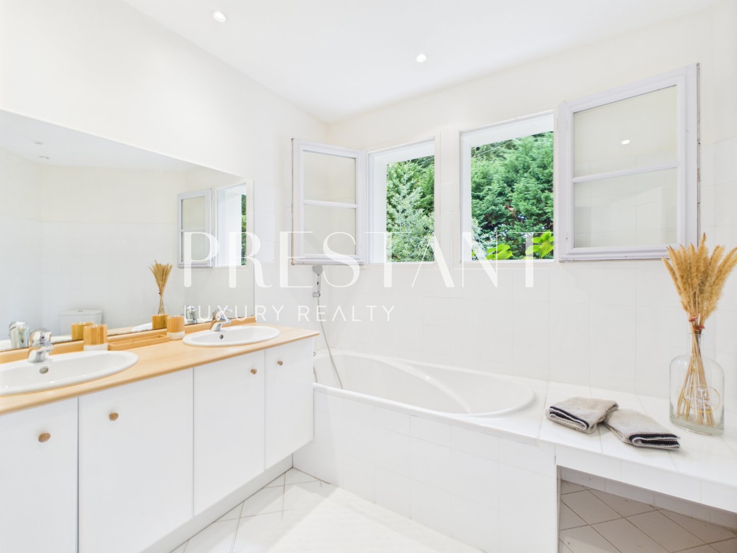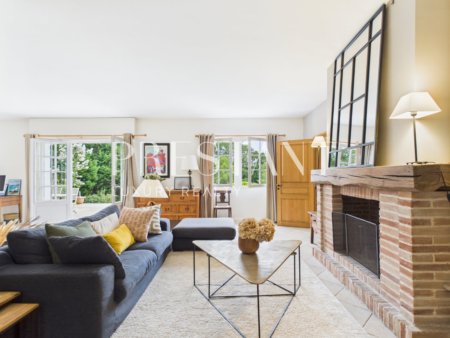 Dans le village prisé dArcangues, cette maison de charme denviron 250 m² implantée sur une parcelle arborée de plus de 4 800 m² séduit par son emplacement privilégié, en position dominante sur la nature environnante. Située au calme absolu, au bout dune allée, elle offre un cadre de vie intimiste et verdoyant, sans aucun vis-à-vis, à seulement quelques minutes de Biarritz, des golfs et des plages. Son architecture basque allie authenticité et confort contemporain. En rez-de-jardin, un vaste séjour lumineux avec cheminée souvre sur une terrasse plein sud de 60 m², prolongée par une piscine ensoleillée à labri des regards. La cuisine dinatoire, conviviale et généreuse, communique naturellement avec les espaces extérieurs. Une suite parentale de plain-pied, avec accès direct à la terrasse, complète ce niveau et garantit une vie fluide et pratique au quotidien. À létage, un large palier dessert trois chambres, chacune disposant de sa salle deau ou salle de bains privative, ainsi quun dortoir idéal pour accueillir famille et amis. Un garage fermé avec accès direct à la maison vient parfaire cet ensemble, en excellent état dentretien. Le charme de larchitecture, la luminosité, la quiétude et la vue dominante sur la nature confèrent à cette propriété un caractère rare sur le marché de limmobilier de prestige à Arcangues. Cette maison à vendre sur la Côte Basque incarne léquilibre parfait entre nature, intimité et élégance, offrant un art de vivre unique, à proximité immédiate du golf dArcangues, de Biarritz et de locéan.