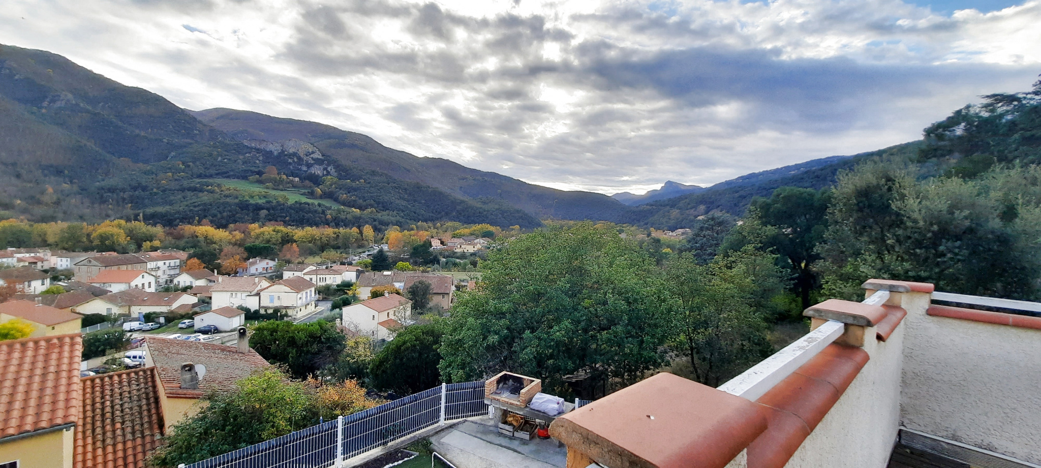 Maison familiale de type F4 indépendante, de construction traditionnelle datant de 2011, vous profiterez de son espace de vie ouvert sur l’extérieur, de sa vue dominante et exceptionnelle sur le village et des couleurs de nos belles montagnes changeant au gré des saisons. Au rez de chaussé vous trouverez une entrée, le coin buanderie avec wc et accès a l’extérieur, une cuisine ouverte sur le séjour, un beau salon donnant sur la terrasse et son coin avec piscine, un bureau et sa verrière. A l’étage 3 chambres spacieuses avec placard dont une avec sa terrasse/solarium, un dégagement avec rangements, le coin salle de bain avec douche et le deuxième wc indépendant. Entièrement équipée de double vitrage , maison isolée, ressentez la performance de chauffage du poêle a bois, extérieur clôturé, portail électrique, annexes de rangement … il ne vous reste plus qu’a nous contacter et programmer une visite. A voir absolument!