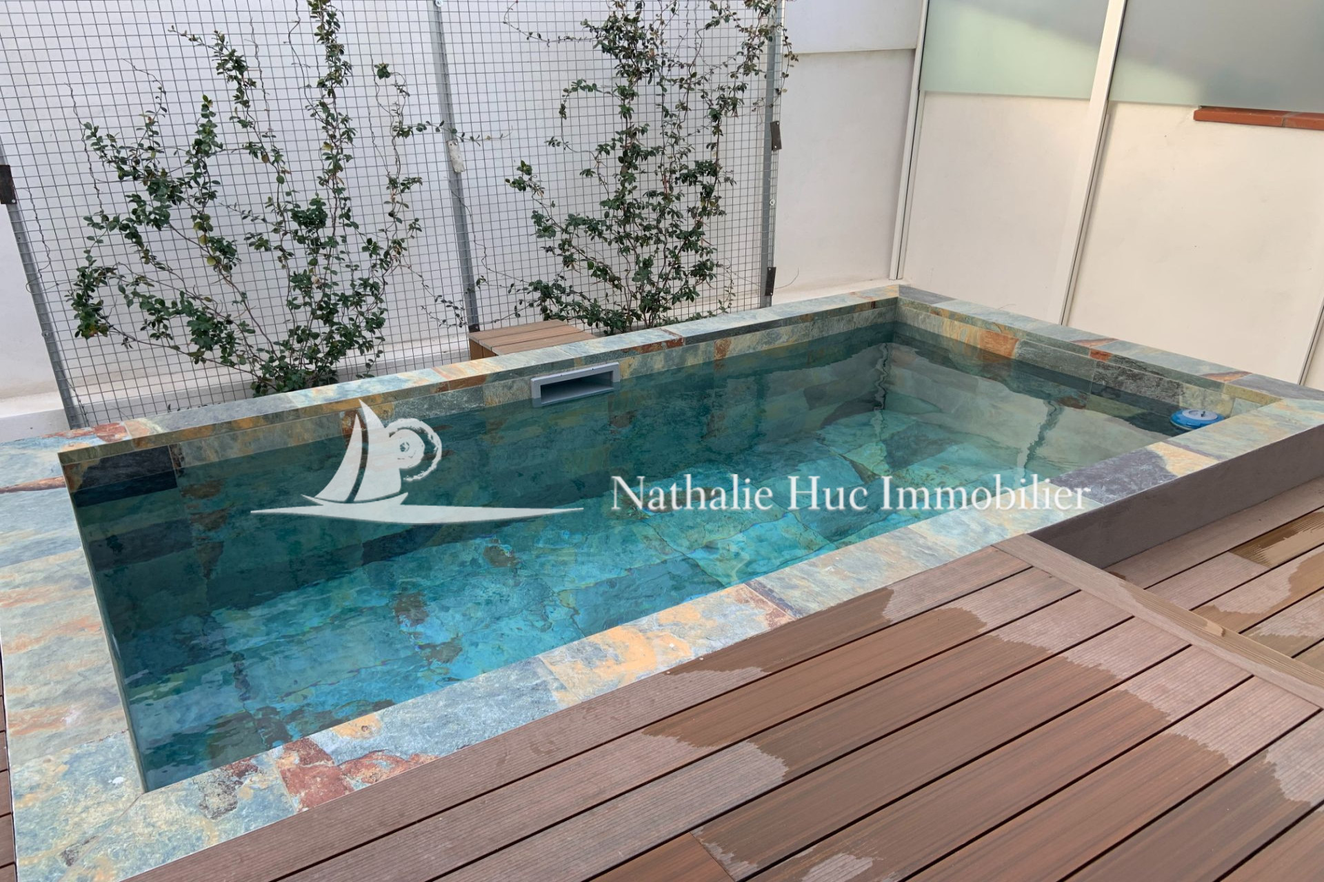 Sur le toit une terrasse de 42 m² véritable espace détente avec bar et cuisine d ‘été vue sur mer – l’ascenseur dessert tous les niveaux ainsi que la terrasse sur le toit