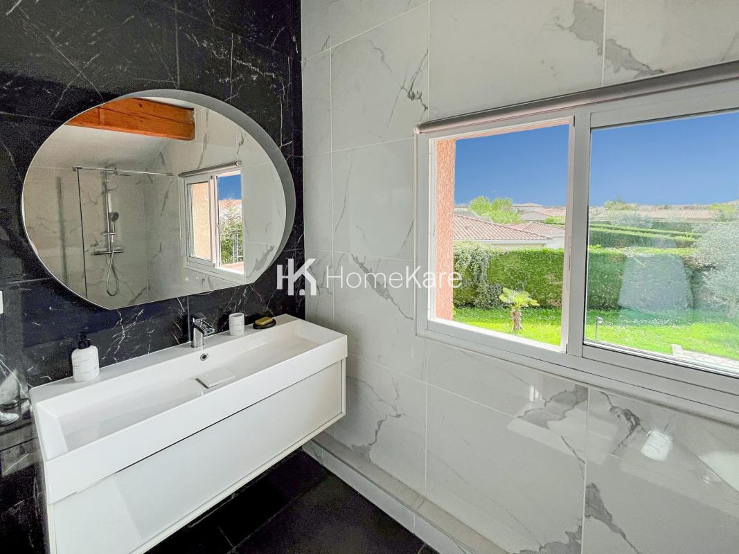 A VENDRE 31270 CUGNAUX – Maison familiale de 197 m² sur terrain de 1 298 m² avec piscine à débordement et garage Idéalement située dans un environnement calme et privilégié, à deux pas de la base de loisirs de La Ramée (proche Tournefeuille), cette propriété offre un cadre de vie rare et recherché. Rez-de-chaussée L’entrée mène vers une vaste pièce de vie de plus de 60 m², lumineuse grâce à ses ouvertures traversantes, avec une superbe vue sur la verdure et la piscine. Le salon cathédrale, agrémenté d’une cheminée, apporte chaleur et convivialité. La cuisine ouverte, entièrement équipée, est prolongée par un cellier fonctionnel. L’espace nuit du rez-de-chaussée comprend trois chambres avec placards intégrés (14,2 m², 12,7 m² et 11,6 m²), une grande salle de bains de 8,3 m² (douche + baignoire) ainsi que des WC indépendants. Étage À l’étage, une grande mezzanine offre de multiples possibilités d’aménagement (salle de jeux, bureau, chambre d’appoint…). Une suite parentale, avec placard et salle d’eau privative avec WC, complète cet espace. Des combles aménageables permettent d’optimiser encore le rangement. Extérieur Le jardin, entièrement clos et sans vis-à-vis, accueille une superbe piscine 10 x 5 m à débordement ainsi qu’une vaste terrasse orientée sud/sud-ouest, idéale pour profiter du calme absolu environnant. La propriété dispose également d’un garage de 28 m² et de plusieurs places de stationnement. Atouts complémentaires Volets roulants électriques Chauffage au sol au gaz Alarme installée Quelques rafraîchissements à prévoir Votre conseiller HomeKare : Alicia LOUPSANS Agent commercial (Entreprise individuelle). HOMEKARE : VENTE – LOCATION – GESTION – SYNDIC