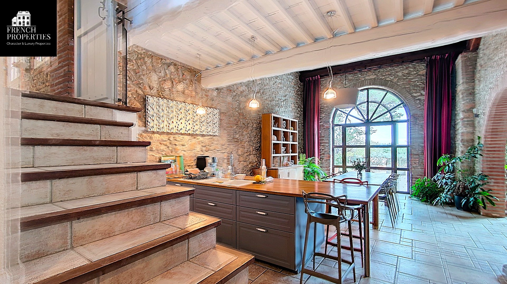 Rénovation de très grande qualité et dans le respect de son authenticité pour ce mas typiquement catalan avec piscine ,en pierre, et datant du 18ème siècle. Offrant des volumes généreux et des prestations de haut standing , cette propriété comprend 12 pièces et 8 chambres toutes climatisées dont 3 chambres dhôtes ( gîtes) avec chacune sa salle deau + wc et coin « cuisine ». Toutes les terres de cette propriété certificées BIO ( ainsi que les exploitations agricoles voisines / essentiellement vignes et oliviers ) sont irriguées en eau grâce à des canalisations enterrées sur 61% de leurs surfaces ( 9 hectares). Cette propriété est dotée de Box et de paddocks à chevaux Une grande pièce de vie 138 m2 avec cheminée et avec chauffage au sol vous permettra dy organiser des réceptions et des tablées conviviales entre amis ou en famille . Lenvironnement et la vue sont exceptionnels : la propriété au calme total est ceinturée par la pinède sur 14.7 hectares en pleine propriété et offre ue vue panoramique sur les montagnes , une vue sur le littoral et sur le Mont du Canigou . Son orientation « plein sud » lui garantit un maximum de luminosité . Cette propriété domine les montagnes du Vallespir, dans la région du Languedoc-Roussillon (Occitanie) , dans le sud de la France et est desservie par un aéroport à Perpignan / Rivesaltes ( à 10 minutes en voiture / accés autoroute péage Nord ). L’utilisation de matériaux de haute qualité et la supervision des travaux dintérieur par des professionnels reconnus ont permis de préserver lauthenticité des lieux tout en lui apportant toutes les prestations du confort moderne. Grâce à lutilisation de matériaux traditionnels , lâme des lieux et son histoire ont été préservés ( sols en gré , portes en bois massif , murs en pierre , poutres en bois apparentes, huisseries en acier de type catalan ) . Dotée de 8 chambres ,de 6 salles deau et de 7 wc dont 3 chambres suite / gîtes avec chacune « salle deau et wc » , cette propriété permet de réunir concomitamment une famille nombreuse et de nombreux amis mais aussi de poursuivre et de développer une activité de « Locations saisonnières / RENTING » avec deux espaces de vie indépendants : un espace dhabitation privé et un espace dhabitation dédié à la location saisonnière ( 3 chambres / gîtes). A l’extérieur, avec une vue à 360 degrés , une piscine et son espace de détente permettent de communier avec la nature en toute quiétude . Description du bâtiment La propriété déploie une surface de plancher totale de 531 m2 sur 2/3 niveaux ( garage compris ) et se décompose : En rez-de-chaussée : Hall d’accueil avec pôele à bois, Pièce de vie de 138 M² avec cheminée , espace mezzanine de 87M², 2 chambres, 1 salle deau , 1 wc, 1 cave à vins, 1 buanderie, 3 chambres suite avec salle deau / wc et kitchenette. En premier étage : 2 chambres avec une salle deau / wc En deuxième étage: 1 chambre suite parentale avec salle deau / wc de 45M² Laccés au Mas est parfaitement entretenu et permet un accès facile à cette très belle propriété . Lorganisation de son environnement végétal lui garantit l’ absence dexposition au feu . Ce MAS chargé dhistorique et réhabilité dans le respect de son authenticité ne pourra que vous interpeler : le dépaysement sera total et la beauté des lieux saura ravir les amoureux des vieilles pierres . BIEN de qualité exceptionnelle et rare !!