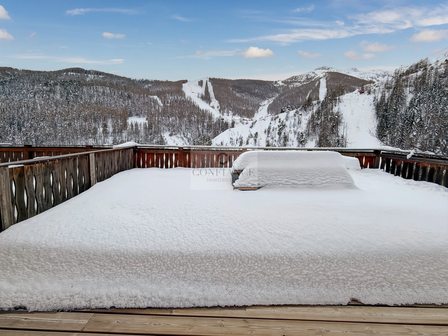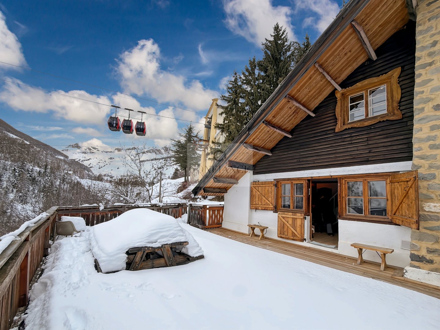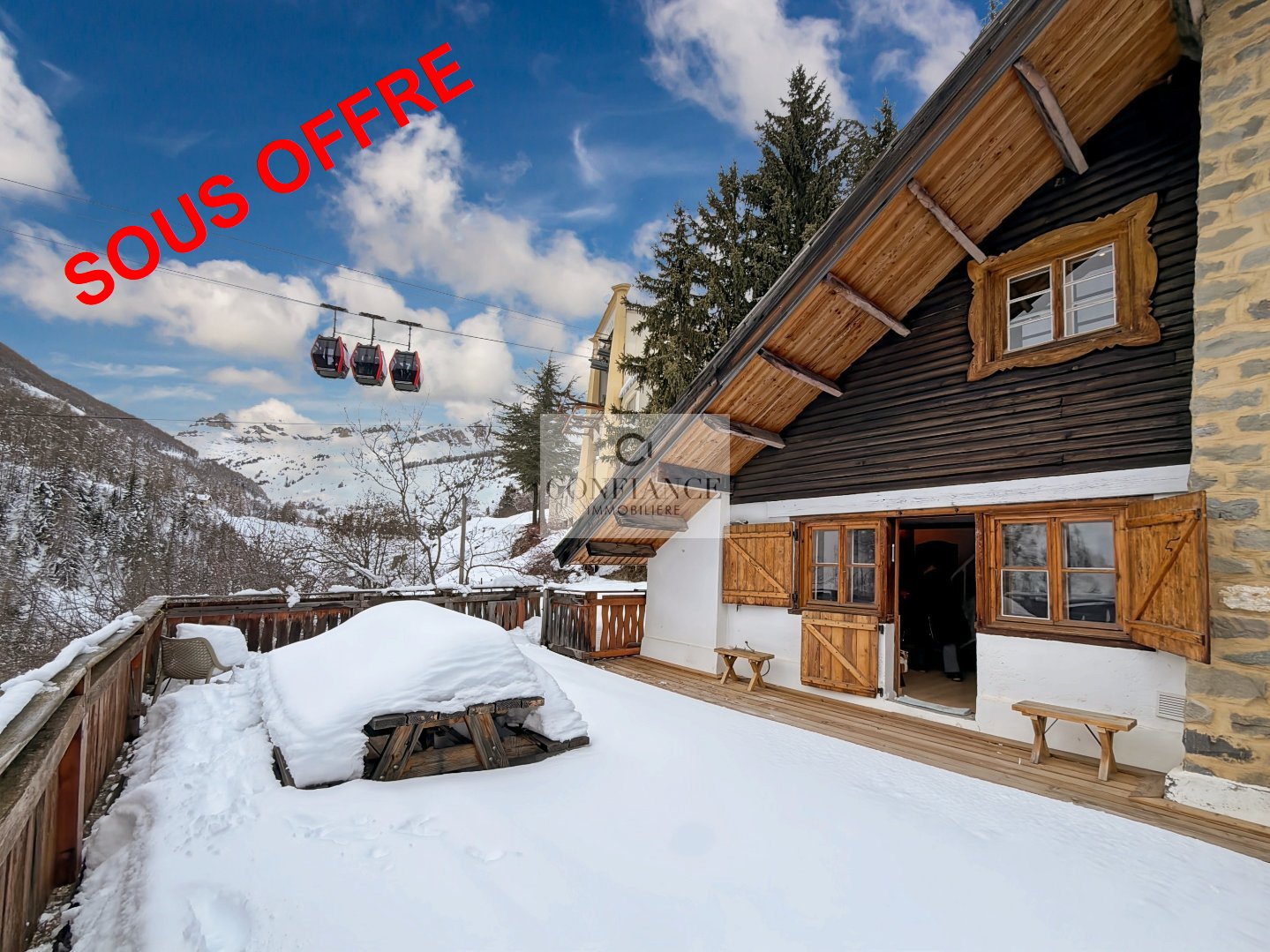 AURON – Demi-chalet Centre station, accès téléphérique immédiat. Situé en plein centre de la station, au pied de la place centrale et à moins de 30 m du téléphérique, ce demi-chalet en pleine propriété est un bien rare à la vente. Édifié sur un terrain de 333 m², il offre environ 77 m² habitables sur trois niveaux et une vue panoramique sur le domaine skiable. Laccès se fait par le dernier étage, comprenant une chambre et une salle de douche avec WC. En descendant, on découvre une pièce à vivre denviron 27 m² avec poêle à granulés, un coin cuisine, un débarras, et un accès direct à une grande terrasse de 47 m². Le niveau inférieur dispose dune grande chambre denviron 19 m², dun emplacement pour un dressing et dune salle de bain avec WC. Emplacement exceptionnel, accès immédiat aux pistes, grande terrasse et fort potentiel. Possibilité dacquérir un double garage à proximité immédiate sur la place centrale. À visiter rapidement. Les informations sur les risques auxquels ce bien est exposé sont disponibles sur le site Géorisques http://www.georisques.gouv.fr Toute l’équipe Confiance Immobilière vous remercie. Plaquette de présentation complète & Visite virtuelle commentée sur demande. Surface Carrez 68m² // habitable : 77m². – DPE en cours Honoraires dagence à la charge du vendeur Toutes nos offres ACHAT VENTE LOCATION sur www.confianceimmobiliere.com
