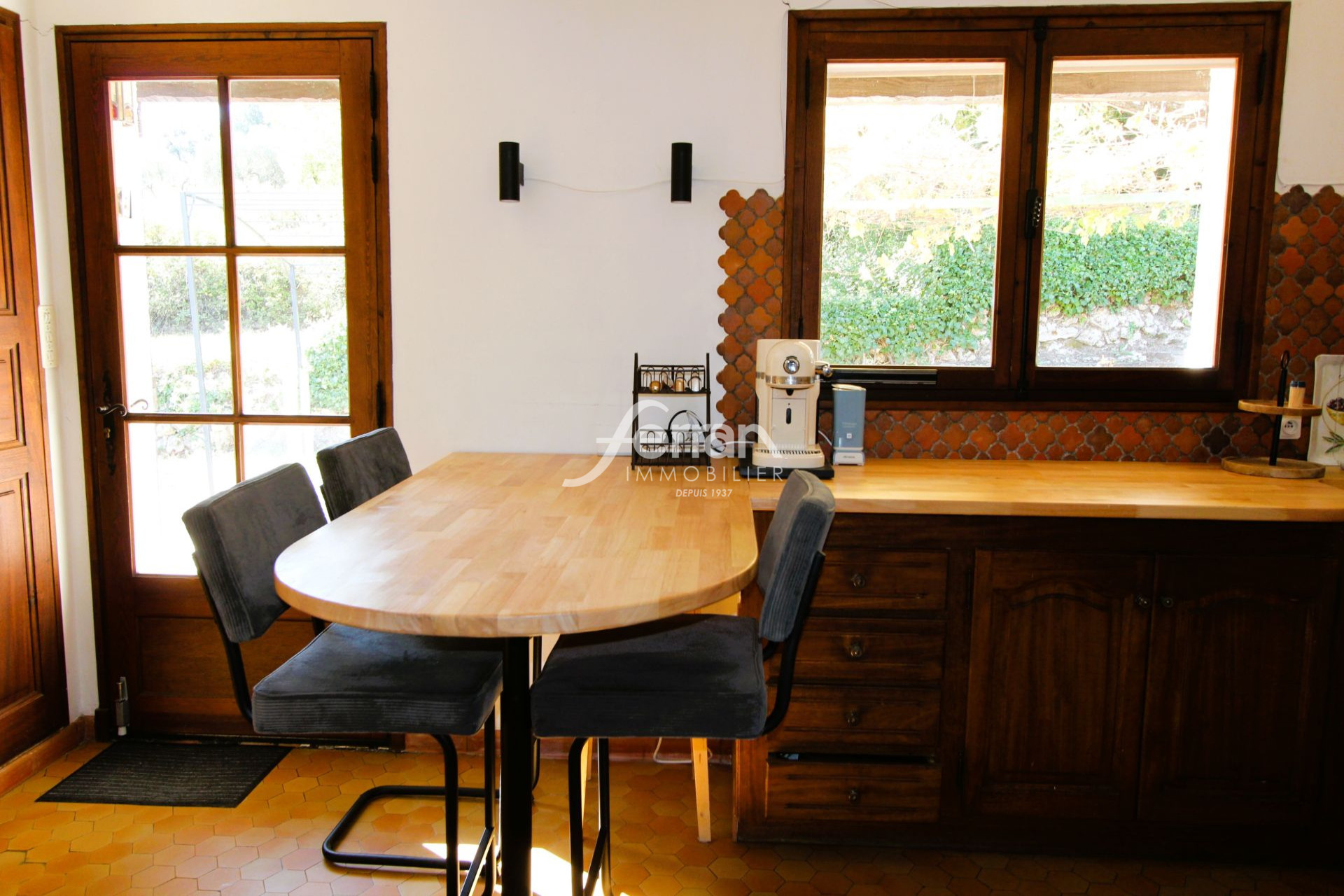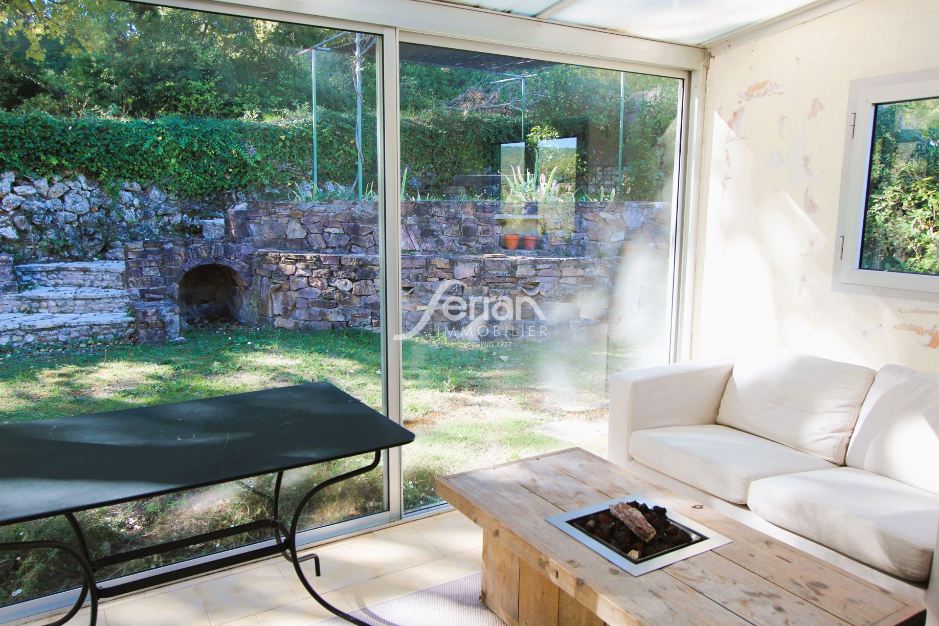 Uniquement dans votre agence Ferran, découvrez cette villa avec vue panoramique et située dans un cadre paisible proche village, de plain-pied, elle offre un vaste séjour avec cheminée de 36m² s’ouvrant sur une grande terrasse couverte, une cuisine indépendante avec buanderie attenante, une chambre avec placard de rangement et WC avec accès sur une véranda lumineuse offrant un espace supplémentaire, une deuxième chambre avec accès sur la terrasse, une salle de bains et un toilette indépendant. Au rez-de-chaussée, un studio indépendant avec kitchenette, salle de douche et WC, dressing. Située sur 1169 m² de jardin entièrement clôturé et complanté d’oliviers, dans un environnement agréable à proximité du village de Flayosc et magnifique vue sur l’Eglise Saint Laurent. Vous trouverez également un garage d’environ 22m², une cave, une chaufferie et un accès au vide sanitaire viennent compléter ce bien. Très beau potentiel, quelques travaux à prévoir, avec possibilité d’extension et piscinable. Rare sur le marché. Bien proposé par Fanny BONZI, agent commercial RCS de DRAGUIGNAN n°909 663 379 Les informations sur les risques auxquels ce bien est exposé sont disponibles sur le site Géorisques : www.georisques.gouv.fr