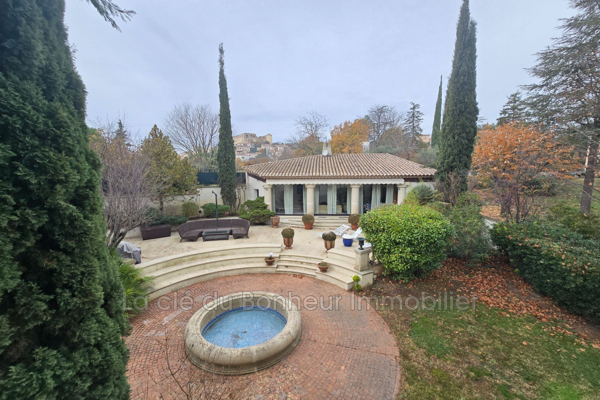Située au centre du village de Gréoux-les-Bains, cette demeure rare vous séduira dès l’entrée, avec son portail et son allée en pierre traversant un parc paysagé et arboré de 3710 m².
