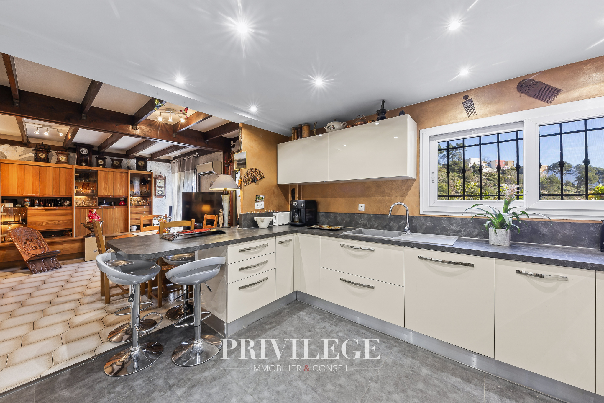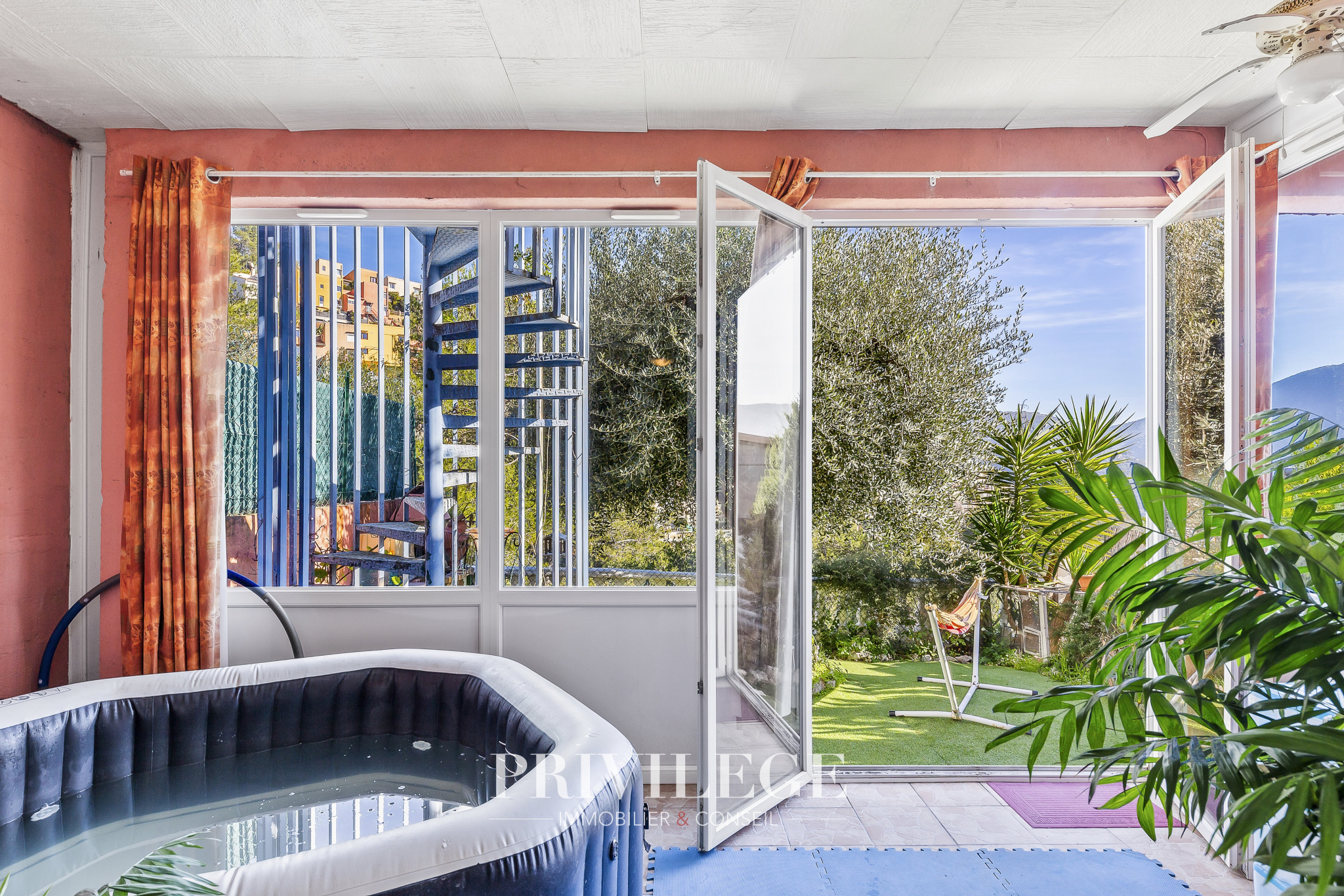 Située sur les hauteurs de La Trinité, dans le quartier calme de La Plana , cette maison mitoyenne, d’une superficie généreuse de 136 m2 habitables, offre une disposition unique dont une dépendance de 34 m2 aménagée en studio.