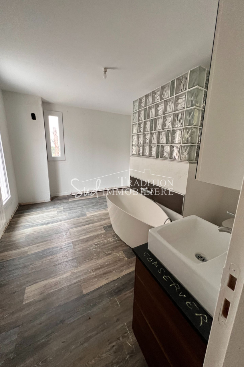 Elle dispose d’un vaste séjour lumineux de 75 m² avec cuisine US ouvrant sur une terrasse au rez-de-chaussée, complété par deux chambres, une salle d’eau, et à l’étage une autre grande chambre supplémentaire avec salle de bain … possibilité de réaménagement de cet espace en fonction de ses besoins !