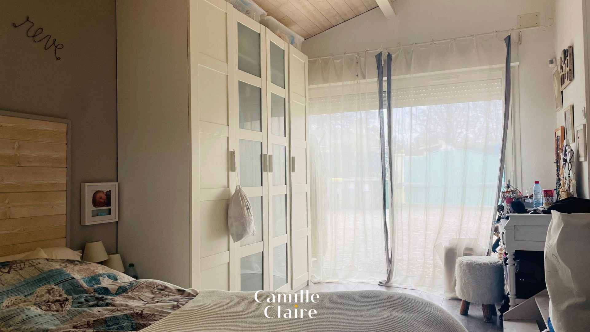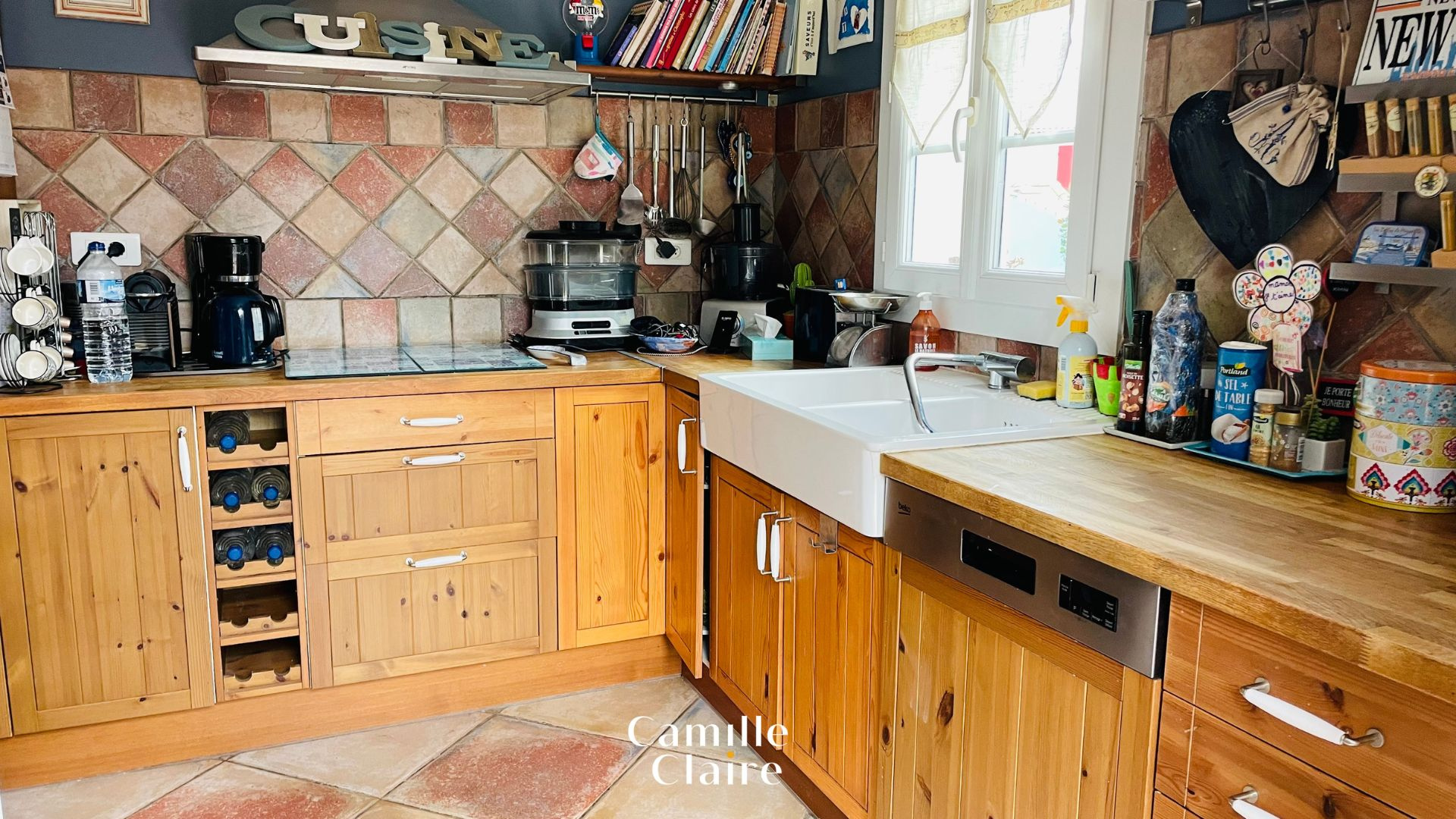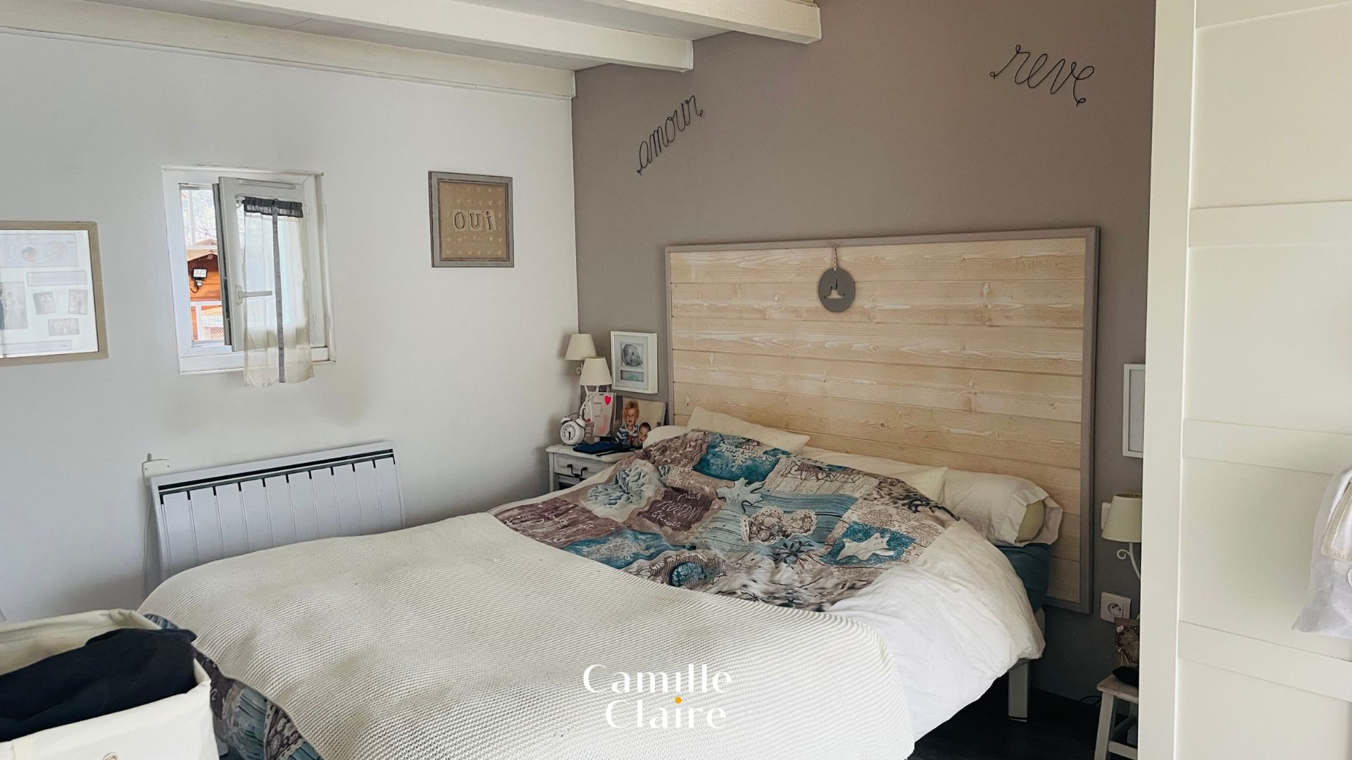 La maison est composée d’une belle pièce de vie lumineuse qui s’ouvre sur une terrasse, agrémentée d’une cheminée,