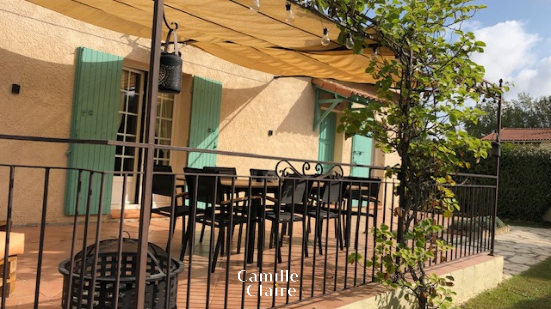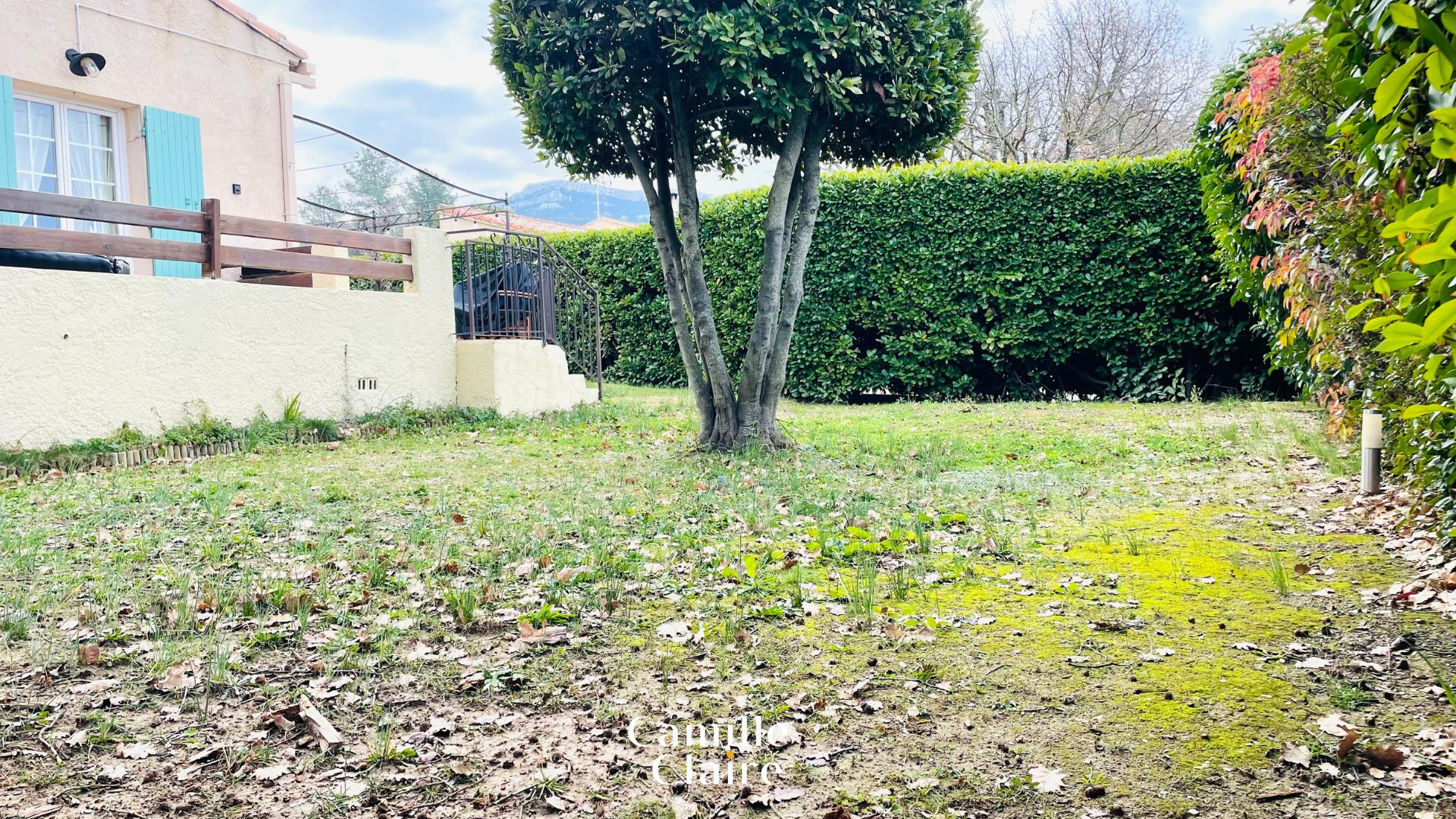 Le terrain plat piscinable avec portail éléctrique, arrosage automatique, potager etc…. terrasse au Sud avec la vue sur les collines, Bus et commerces à proximité.