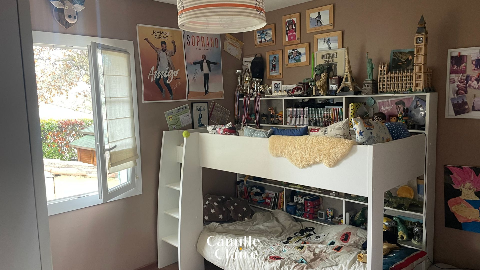 cuisine équipée, 3 chambres, 1 salle d’eau ( douche italienne), 1 WC séparé.