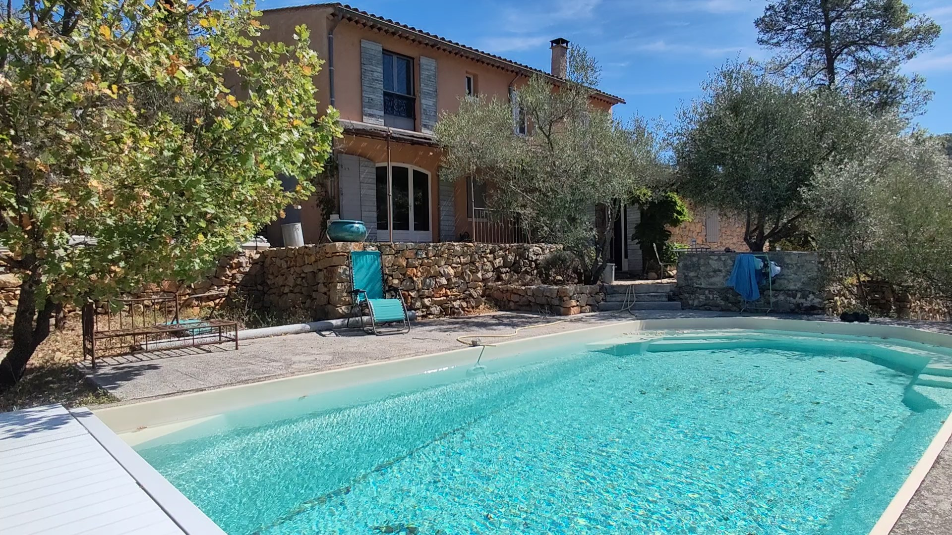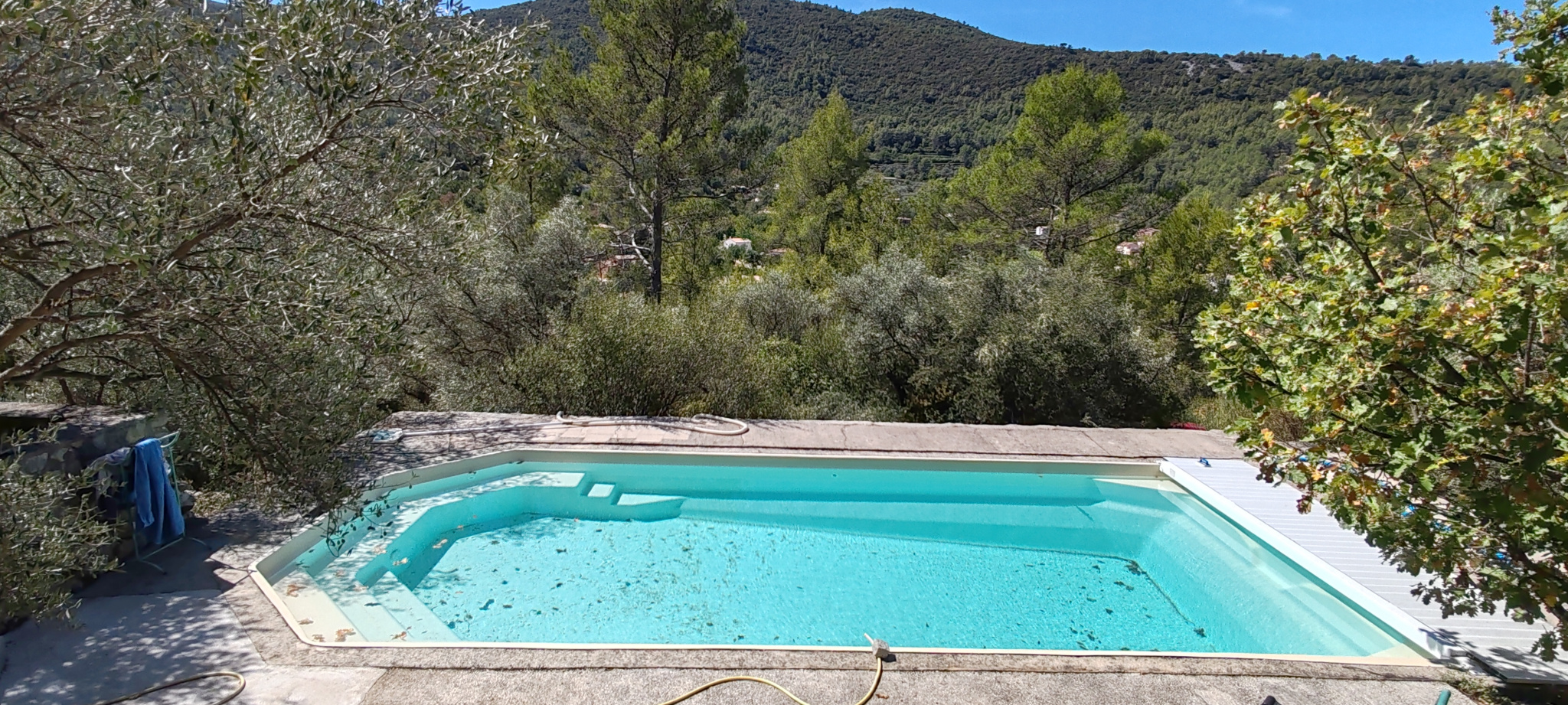 Avec sa vue dégagée sur les collines boisées, plein sud, vous pourrez profitez d’une piscine de grande taille à l’abri de tout voisinnage.