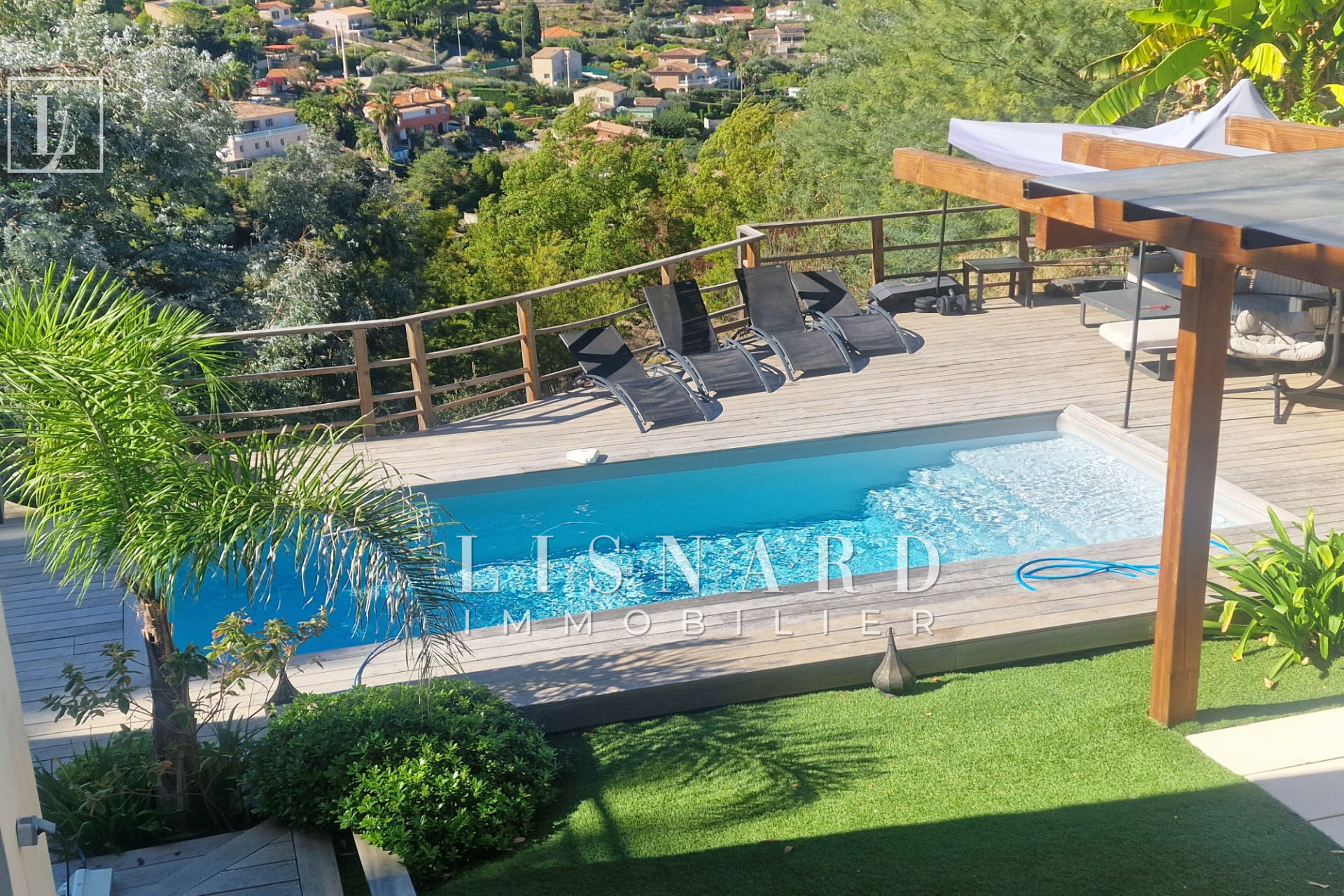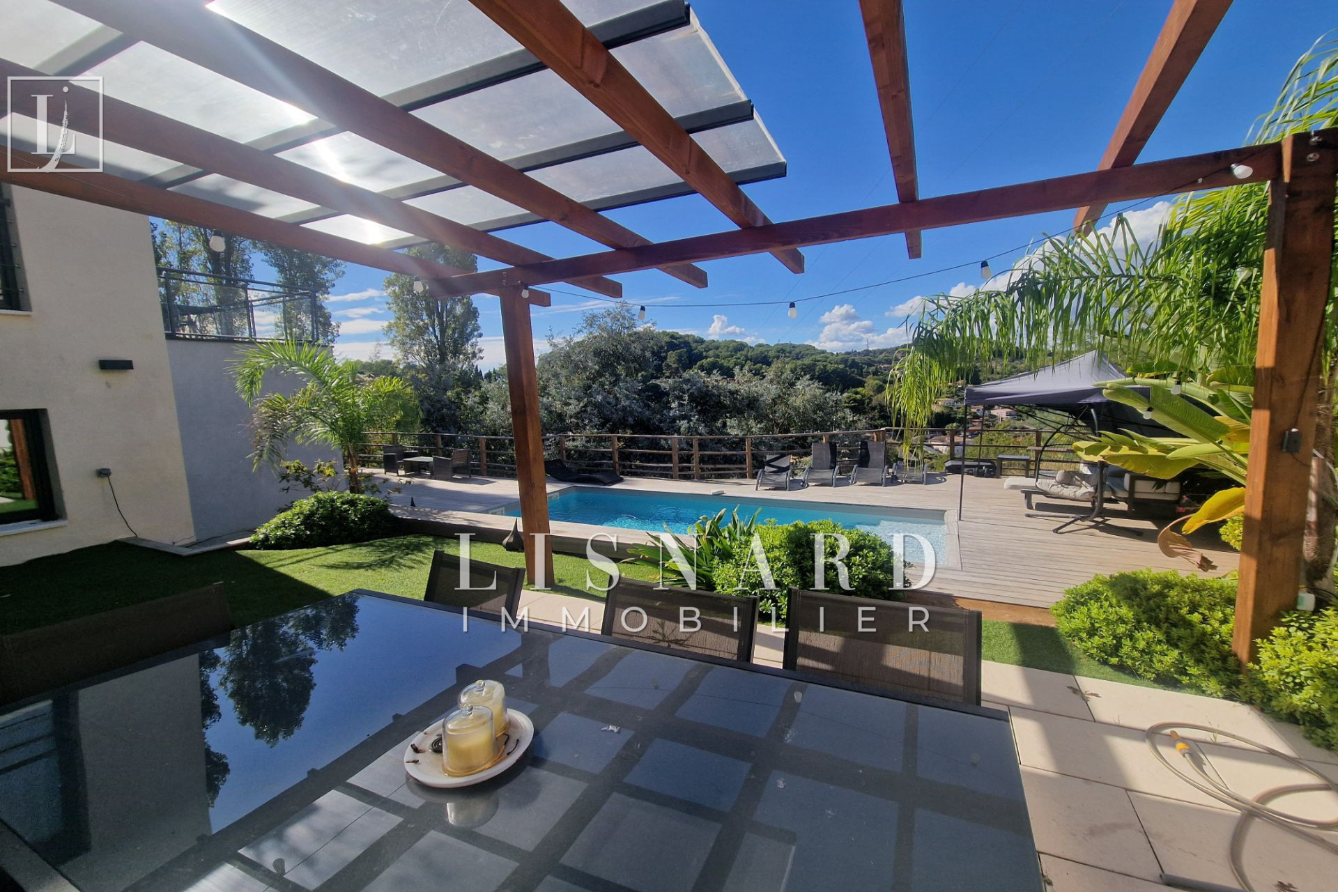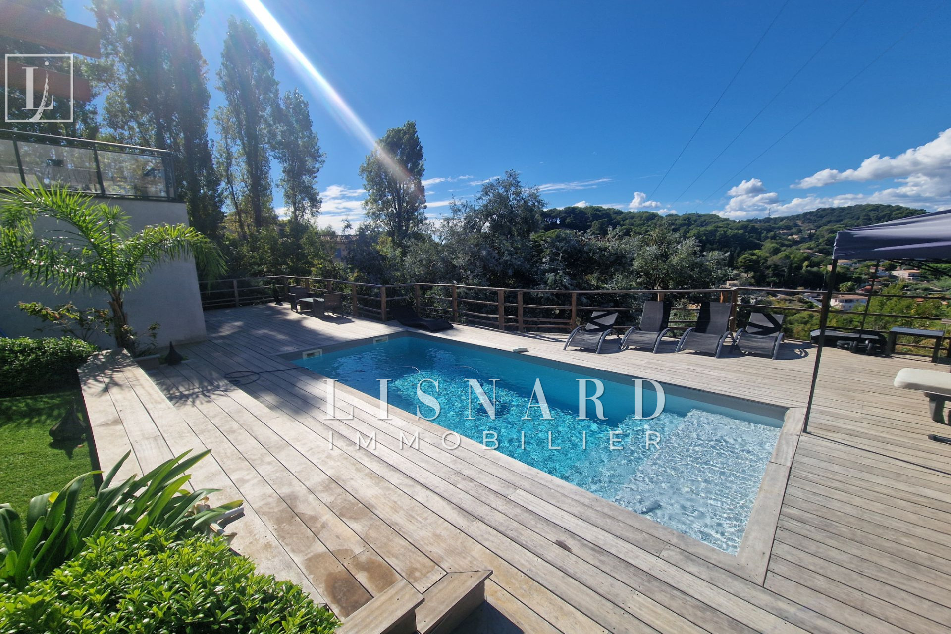 Lisnard Immobilier vous propose cette superbe villa contemporaine sise dans une adresse prestigieuse de Vallauris, quartier Super Cannes