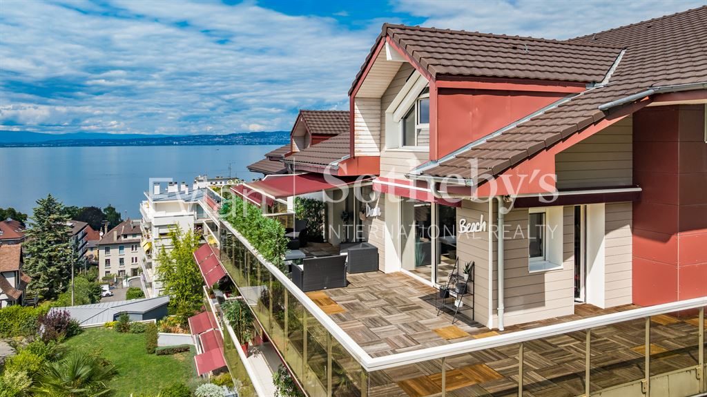 Appartement - Vue fleuve - Evian-les-Bains - Auvergne-Rhône-Alpes - France - Evian les Bains : T4 Duplex meublé vue lac panoramique - 5 pièces - 3 chambres - 16 - 133 m² - Bien Avec Vue