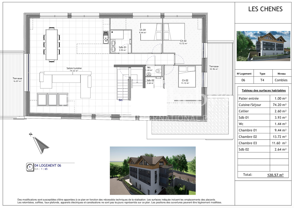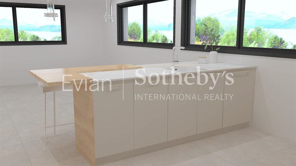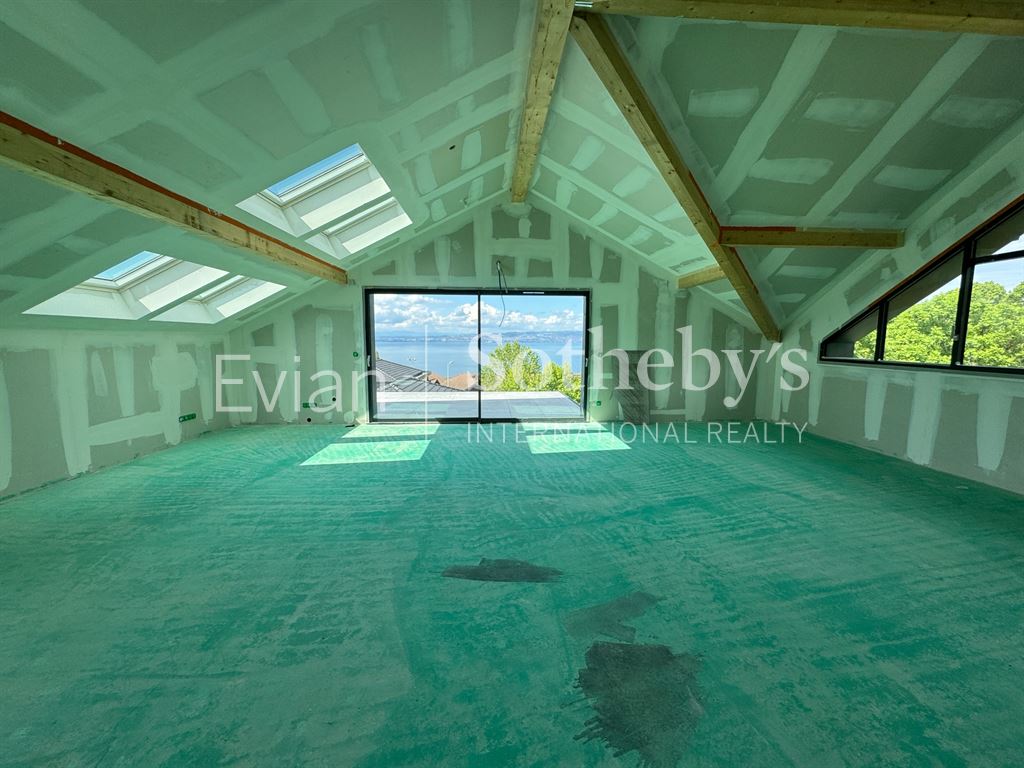 Neuvecelle, à proximité immédiate du centre d’Evian dans une petite résidence neuve de 6 logements (normes RE2020) : appartement T4 de 120.57 m² situé en dernier étage avec une vue lac panoramique. ll se compose comme suit : une entrée, une cuisine équipée ouverte sur un vaste séjour de 74 m2 avec balcon de 16,87 m2, 3 chambres dont une suite parentale avec dressing et salle d’eau, un cellier, un WC séparé, une salle d’eau. Une seconde terrasse de 10,96 m2 orientée Sud, 1 cave et 2 places de parking complètent ce logement. Prestations de qualité : isolation par l’extérieur, pompe à chaleur, carrelages 80×80, volets roulants électrique. Livraison été 2024.