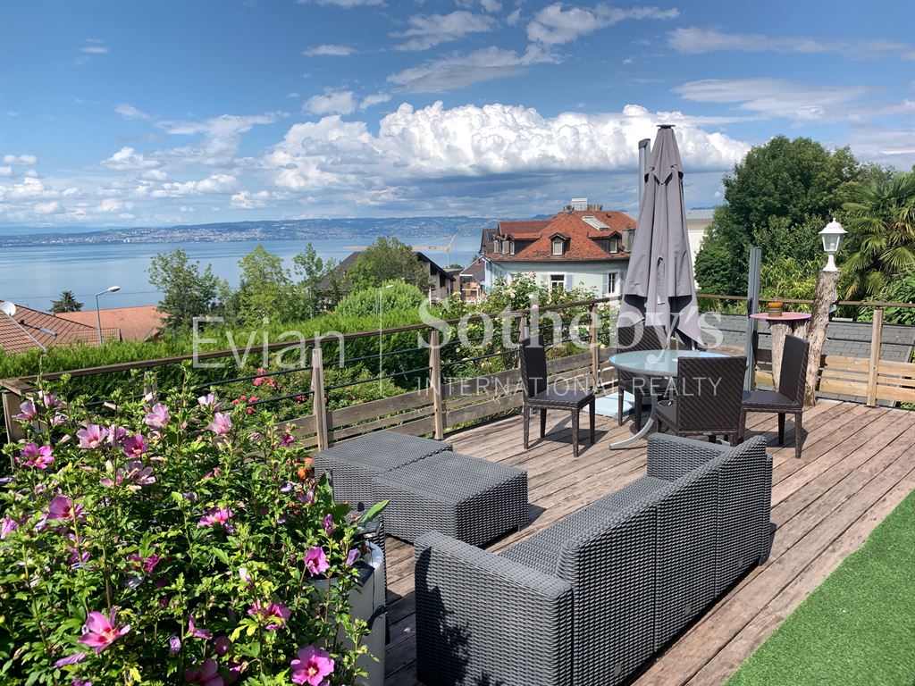 EVIAN SOTHEBY’S INTERNATIONAL REALTY vous propose sur la commune d’Évian, une maison des années 1970 d’environ 243 m² répartis sur deux niveaux, offrant une magnifique vue panoramique sur le lac.