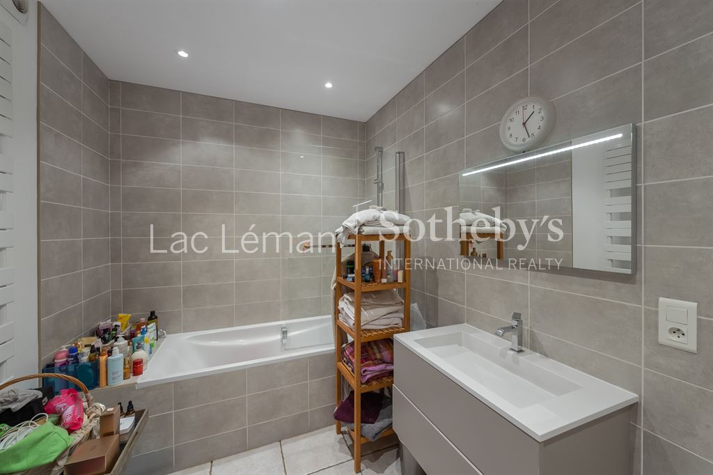 LAC LEMAN SOTHEBY’S INTERNATIONAL REALTY vous propose en Exclusivité :Au coeur du village de Messery, charmante maison de village entièrement rénovée avec goût. Cette bâtisse alliant authenticité et modernité avec poutres apparentes, vous offre 180 m² habitable sur 240 m² environ de superficie totale répartie sur 3 niveaux, bénéficiant d’une jolie vue dégagée sur les toits laissant apercevoir le lac depuis sa terrasse tropézienne.