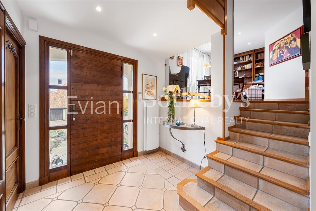 Située à Neuvecelle, à seulement 5 minutes en voiture du centre d’Évian, dans une impasse calme, cette maison de 189,72 m² habitables s’étend sur un terrain de 917 m². Elle se compose comme suit :