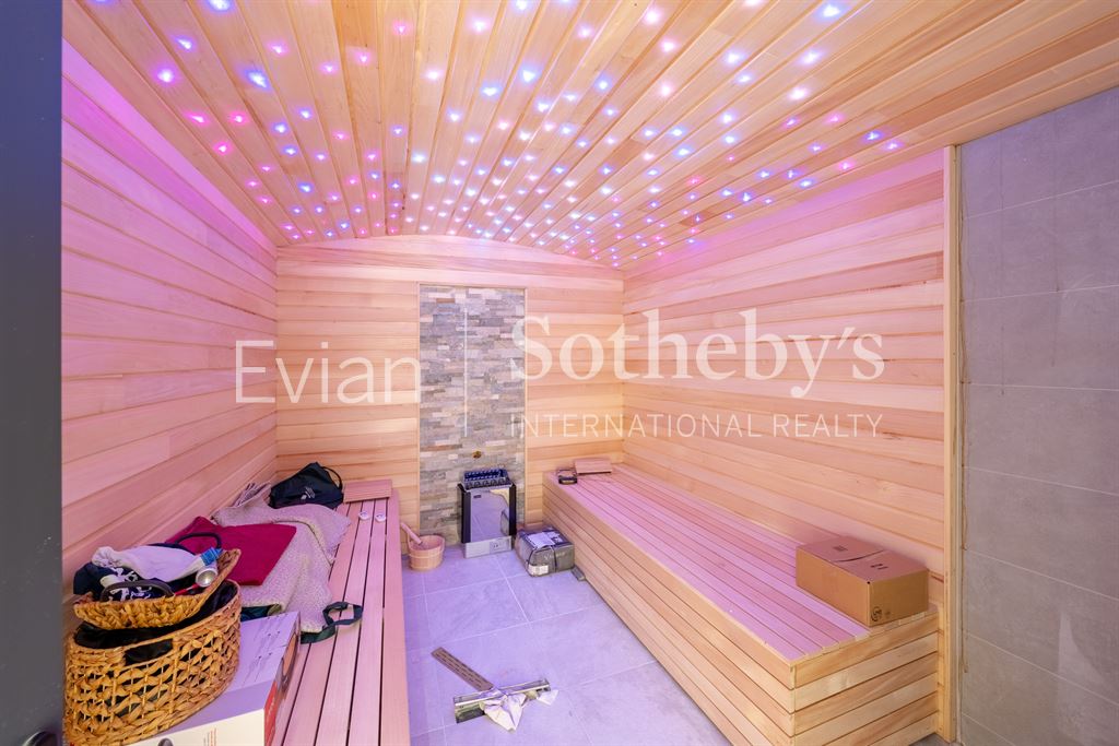 Elle comprend : un vaste séjour de plus de 50 m2 avec une grande terrasse avec vue lac, une cuisine équipée de 28 m2, quatre chambres en suite avec leur salle d’eau attenante. Studio indépendant, une salle vidéo, un sauna, une cave, une buanderie et un grand garage.