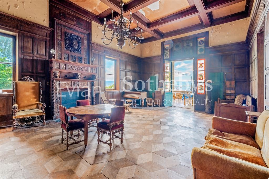 La villa «Les Eaux Douces» s’inscrit dans un parc arboré d‘environ 5 600 m² qui accueille une maison de gardien indépendante (T3) de 60 m2 avec deux garages ainsi qu’un charmant pavillon d’invités (45m2) plus sa terrasse (45m2) aménagés au-dessus du hangar à bateaux (80m2). La maison principale, quant à elle, développe une superficie habitable d’environ 480 m² et se distingue par des volumes impressionnants : un vaste salon de réception avec une belle hauteur sous plafond ouvrant sur une terrasse couverte donnant sur le lac, un petit salon, une salle à manger, une salle de billard, une cuisine, huit chambres familiales dont une avec terrasse, cinq chambres de service, cinq salles de bains, ainsi qu’un sous-sol partiellement excavé.