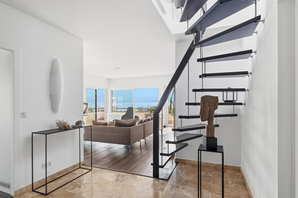 Panorama d’exception sur le lac et les montagnes. Dans l’un des secteurs les plus recherchés, à seulement quelques pas du lac, séduction immédiate pour cet appartement en attique de 138 m2. Entièrement bordé de baies vitrées et doté d’un balcon filant de 53m2, il bénéficie d’une triple exposition offrant une vue lacustre spectaculaire, véritable tableau vivant en toute saison. Couronné d’un magnifique toit terrasse de 115 m2, sans vis à vis, il déploie un panorama majestueux à 360°. Cet appartement sécurisé, très lumineux, séduit dès l’entrée. Il est doté d’une vaste pièce de vie, d’une cuisine équipée, de deux grandes chambres, d’un dressing, d’une salle de douche. Atout supplémentaire : il dispose d’un espace totalement indépendant avec chambre, séjour, salle de douche. Vous profiterez également de nombreux rangements. En annexe : un garage sécurisé, une cave, un local vélo. Copropriété de 223 lots. Charges annuelles : 7109 euros. Les informations sur les risques auxquels ce bien est exposé sont disponibles sur le site Géorisques.