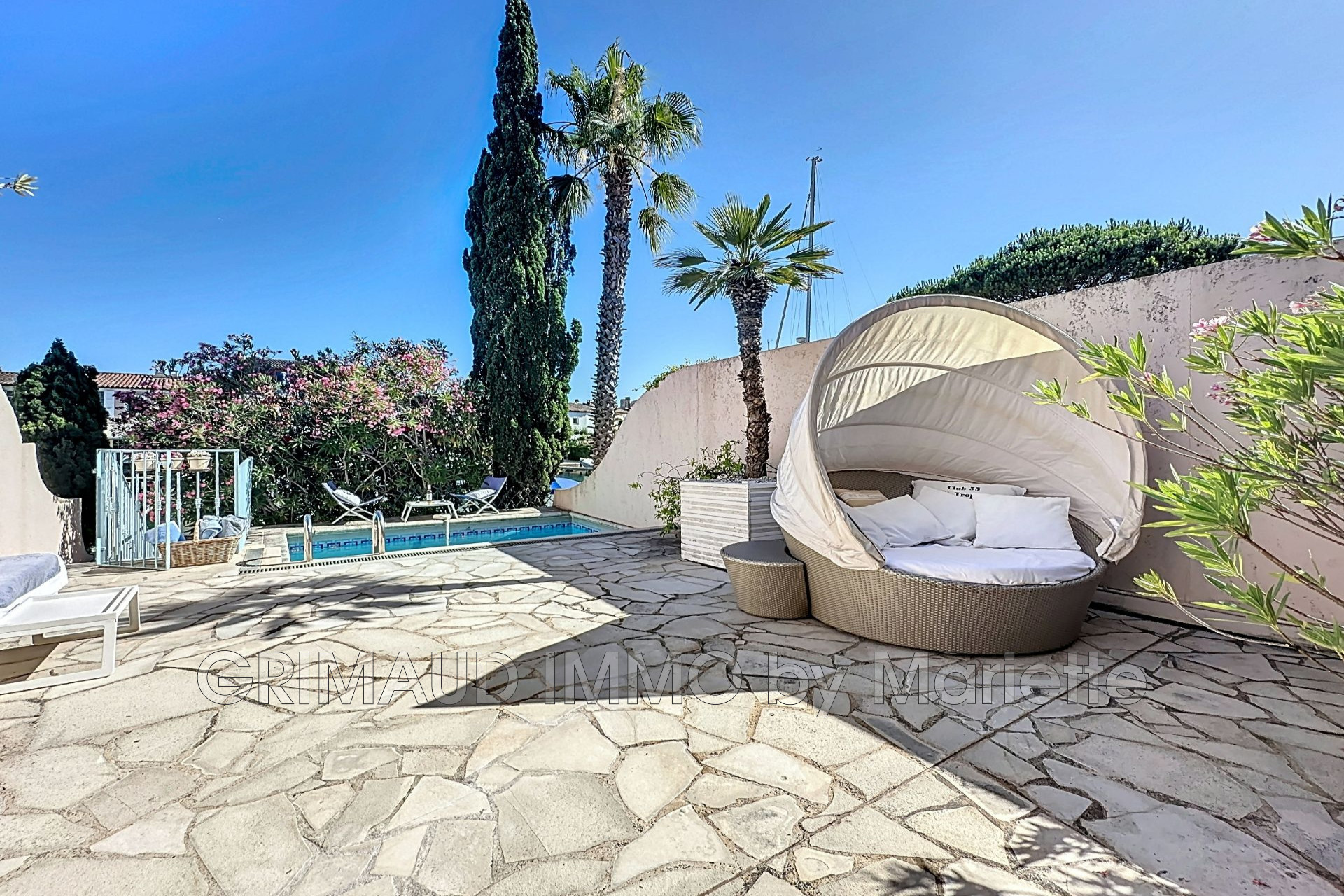 Ce bien dispose d’une grande terrasse avec piscine, et d’une place d’amarrage de 17m X 6m.