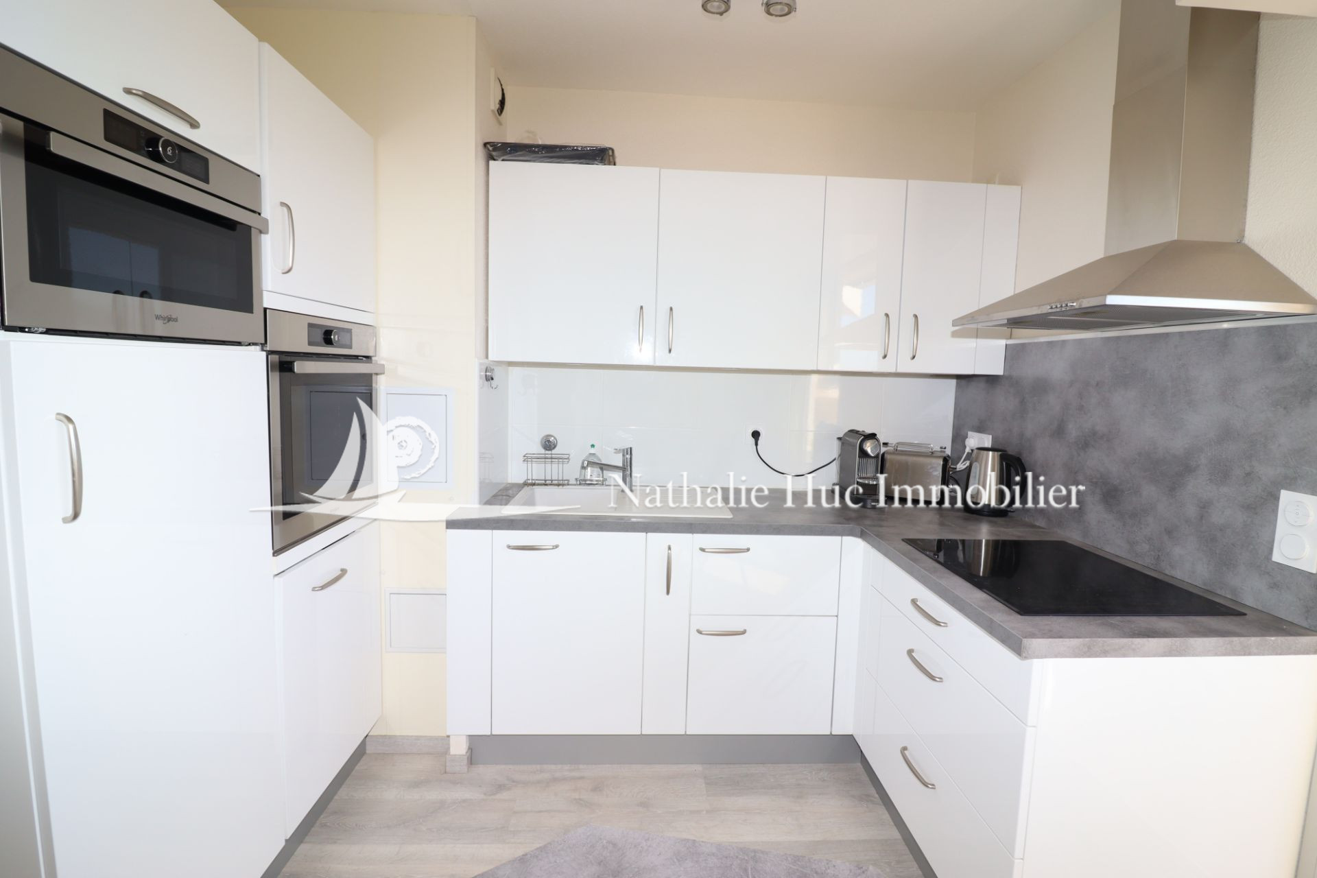 66140 CANET PLAGE, dans une résidence Le Méditerranée, un studio entièrement rénové en étage élevé, composé d’une entrée, wc séparé, salle d’eau, salon avec une superbe cuisine équipée, terrasse vue mer Albères et Canigou, climatisation réversible, placard.