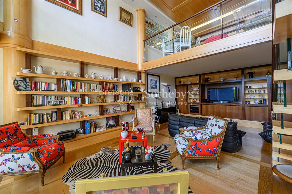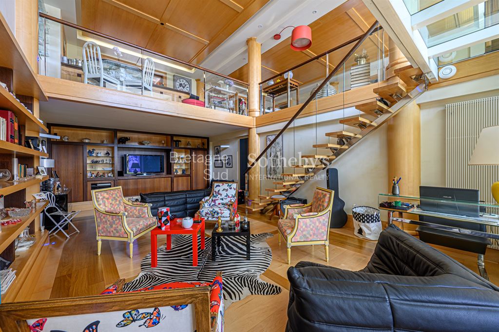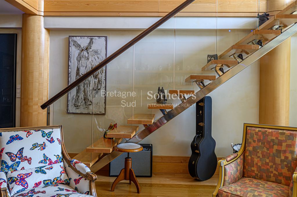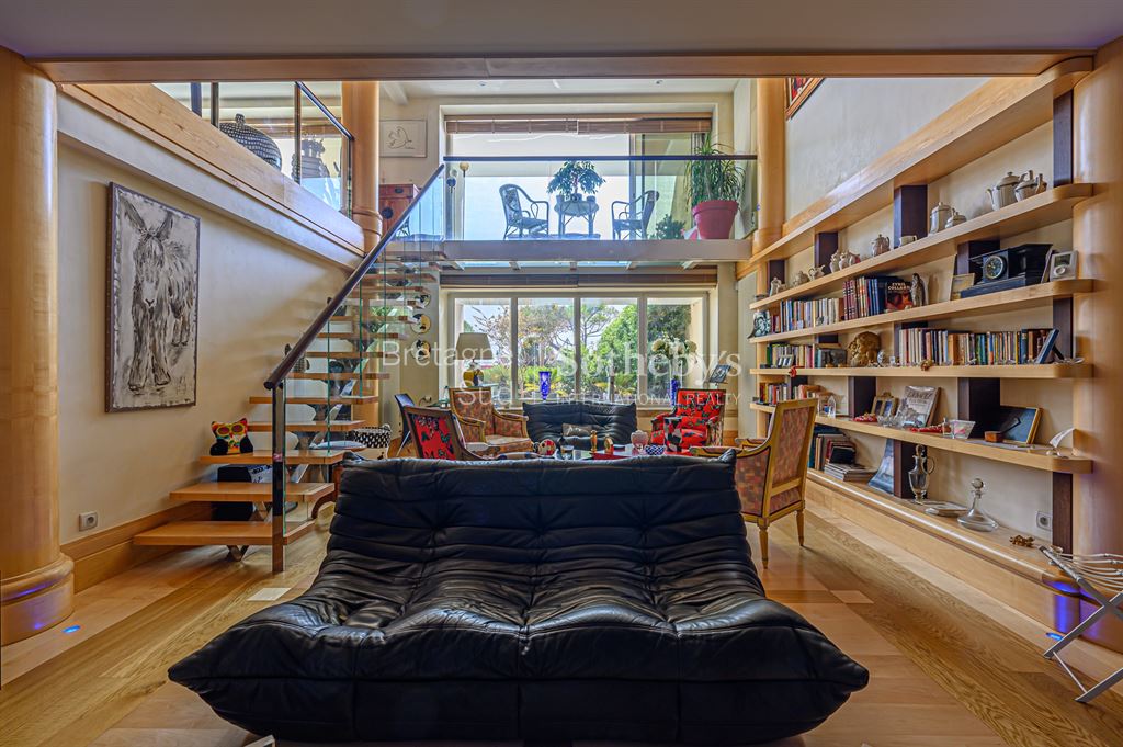 Exclusivité: La Baule Face mer : Votre Agence Bretagne Sud Sotheby’s International Realty vous propose ce magnifique appartement en duplex de 183 m2 face à la Baie, conçu et pensé par l’architecte de renom international Lionel Bureau , avec l’intégralité d’une terrasse de 30 m2, de 15 m de long, sans vis à vis et en retrait du boulevard. Entrée avec ascenseur privé donnant accès direct à L’Appartement. Place de parking couverte. Un Bien atypique qui saura vous séduire par ses volumes et ses matériaux de grande qualité. Ce Bien est unique et très rare à la vente.