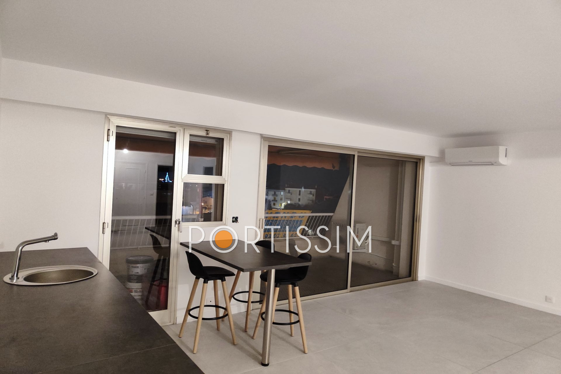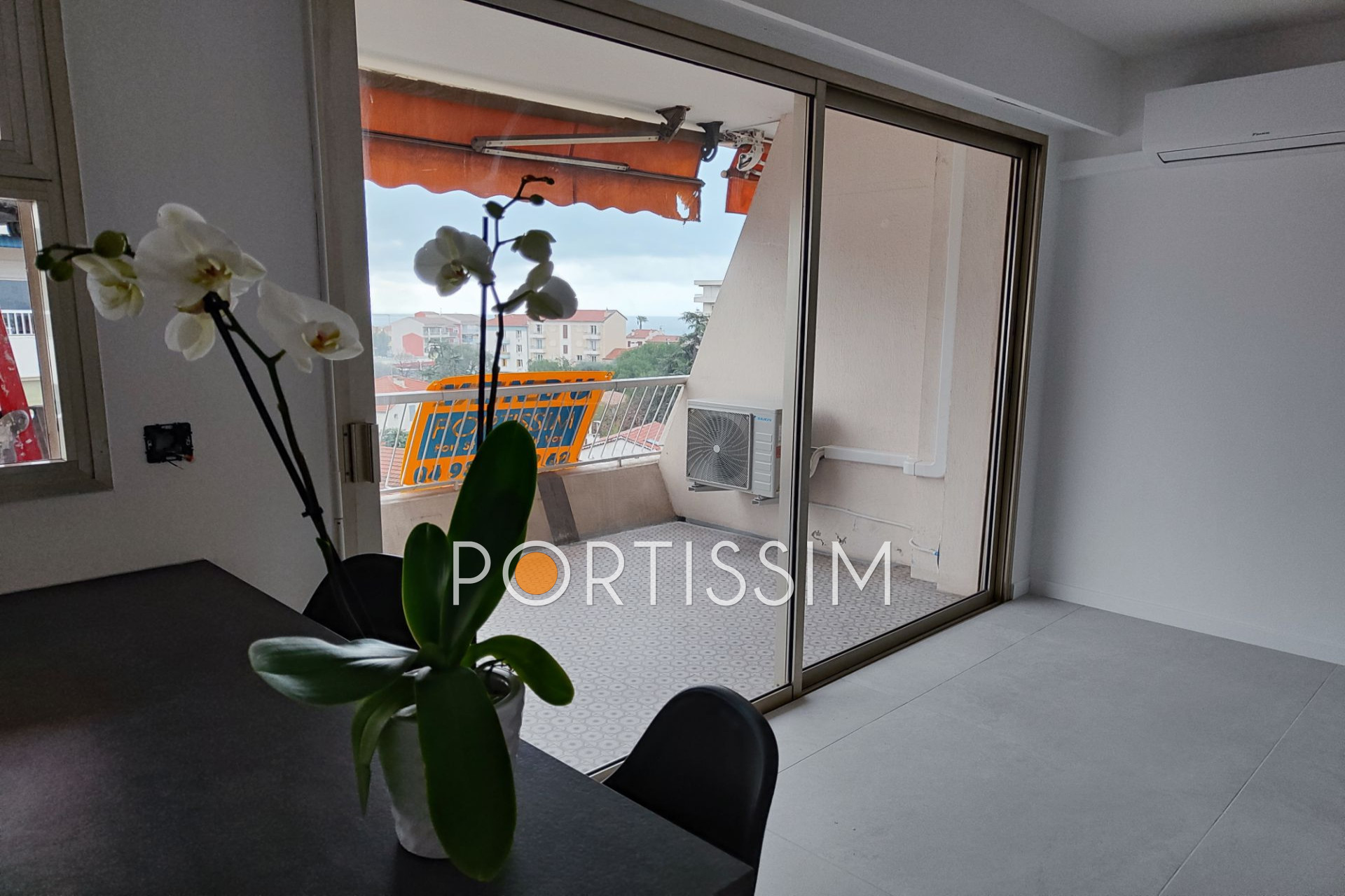 Cuisine ,séjour ouvert sur la terrasse est vue mer, traversant avec chambre avec terrasse ouest , salle de douche, toilette séparé,chauffage individuel avec deux climatiseurs air chaud et froid.