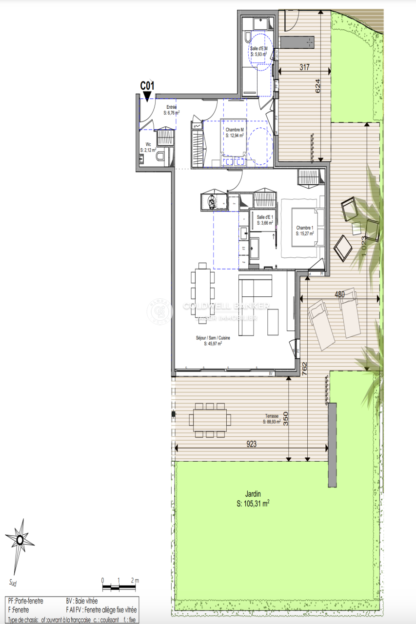 Avec une généreuse superficie de 79,97m2, comprenant un espace de vie de 34m2, 2 chambres et 2 salles de douche, cet appartement dispose d’un jardin et d’une terrasse totalisant 52m2, créant une fusion harmonieuse entre les espaces intérieurs et extérieurs. Une place de parking souterraine ajoute praticité et sécurité à cette demeure. L’architecture contemporaine combine des matériaux intemporels pour préserver le caractère authentique de cette résidence exclusive