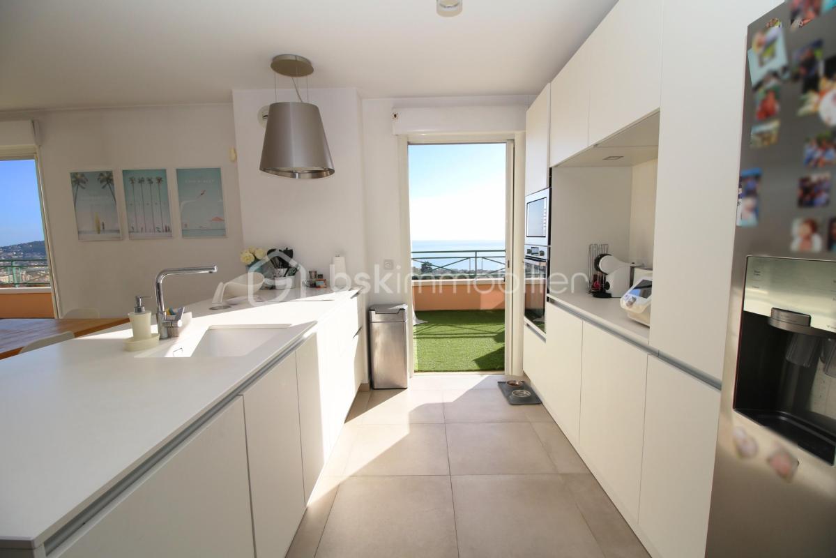 Penthouse – Villa sur le toit : Sur les hauteurs du Parc Impérial, corniche ‘bellevue’, magnifique 4 pièces en DERNIER ÉTAGE avec VUE MER panoramique à vendre avec cave et 2 parkings en sous-sol. Ses atouts principaux : calme, terrasse de 77 m² d’angle, superficie rare de 122,23 m², exposition principale sud et est, cuisine équipée ouverte sur le séjour avec une pièce de vie de 60 m², grandes baies coulissantes sur la mer et les collines dont la principale du séjour à ‘galandages’ au rendu réellement ‘saisissant’ avec la mer omniprésente depuis l’intérieur comme de la terrasse. Ce bien bénéficie d’une luminosité constante, de 2 chambres avec placards, dont l’une avec un bureau attenant idéal pour télétravail, une salle de douche / WC, ainsi qu’une 3ème chambre en suite parentale avec salle de bain / WC, le tout en parfait état rénové il y a seulement quelques années. Ce bien rare à la vente est situé dans une copropriété de très bon standing de 2007 avec piscine au calme, dominant toute la ville et pourtant à 5 minutes en voiture ou en bus du centre-ville. Charges annuelles courantes : 4 745 euros (soit environ 395 euros par mois incluant eau, ascenseur, espaces verts, entretien, syndic, piscine, charges communes). Copropriété de 48 lots principaux. CLASSE ÉNERGIE C, Climat A. La première photo de l’annonce (Terrasse) est un simulation d’aménagement avec un sol et du mobilier différent (car actuellement gazon synthétique posé sur le carrelage). Prix du bien : 1 150 000,00 € Les honoraires d’agence sont à la charge du vendeur. Pas de procédure en cours. Nombre de lots : 4 Charges prévisionnelles annuelles : 4 745,00 € Date de réalisation du diagnostic énergétique : 20/01/2026 Score DPE : 113 kWhEP/m²/an Score GES : 4 kgepCO2/m²/an Montant estimé des dépenses annuelles d’énergie pour un usage standard : entre 1580.00 € et 2200.00 € par an. Prix moyens des énergies indexés sur l’année 2023 (abonnements compris). Les informations sur les risques auxquels ce bien est exposé sont disponibles sur le site Géorisques.