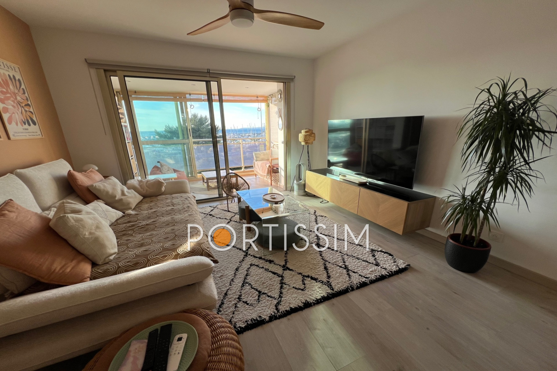 Bel appartement 3 Pièces traversant, belle vue mer panoramique sud, deux chambres avec rangements et très calmes, cuisine équipée moderne, salle de douche à l’Italienne, wc indépendant, terrasse et Balcon, étage élevé. Cave et Parking privatif,