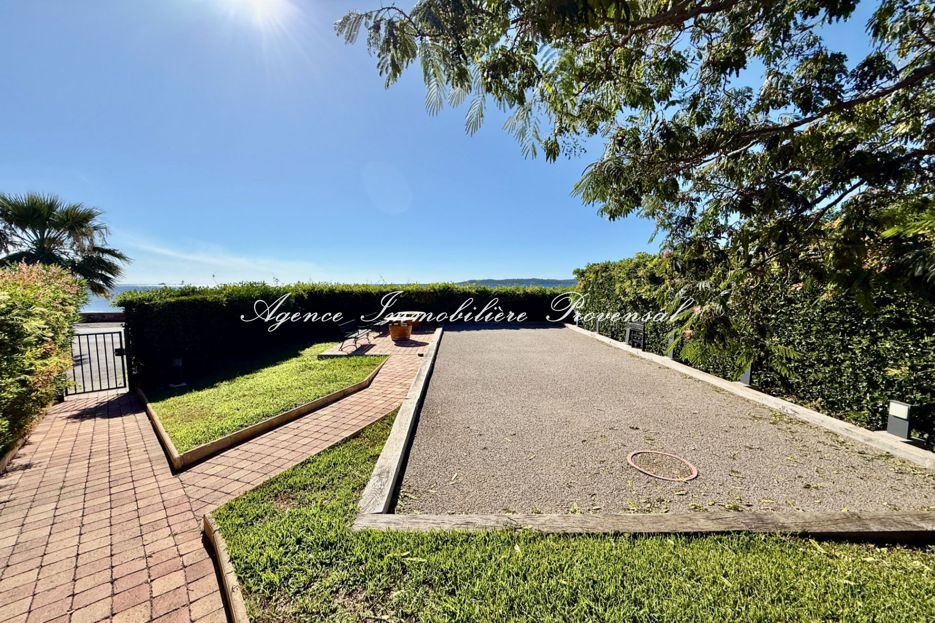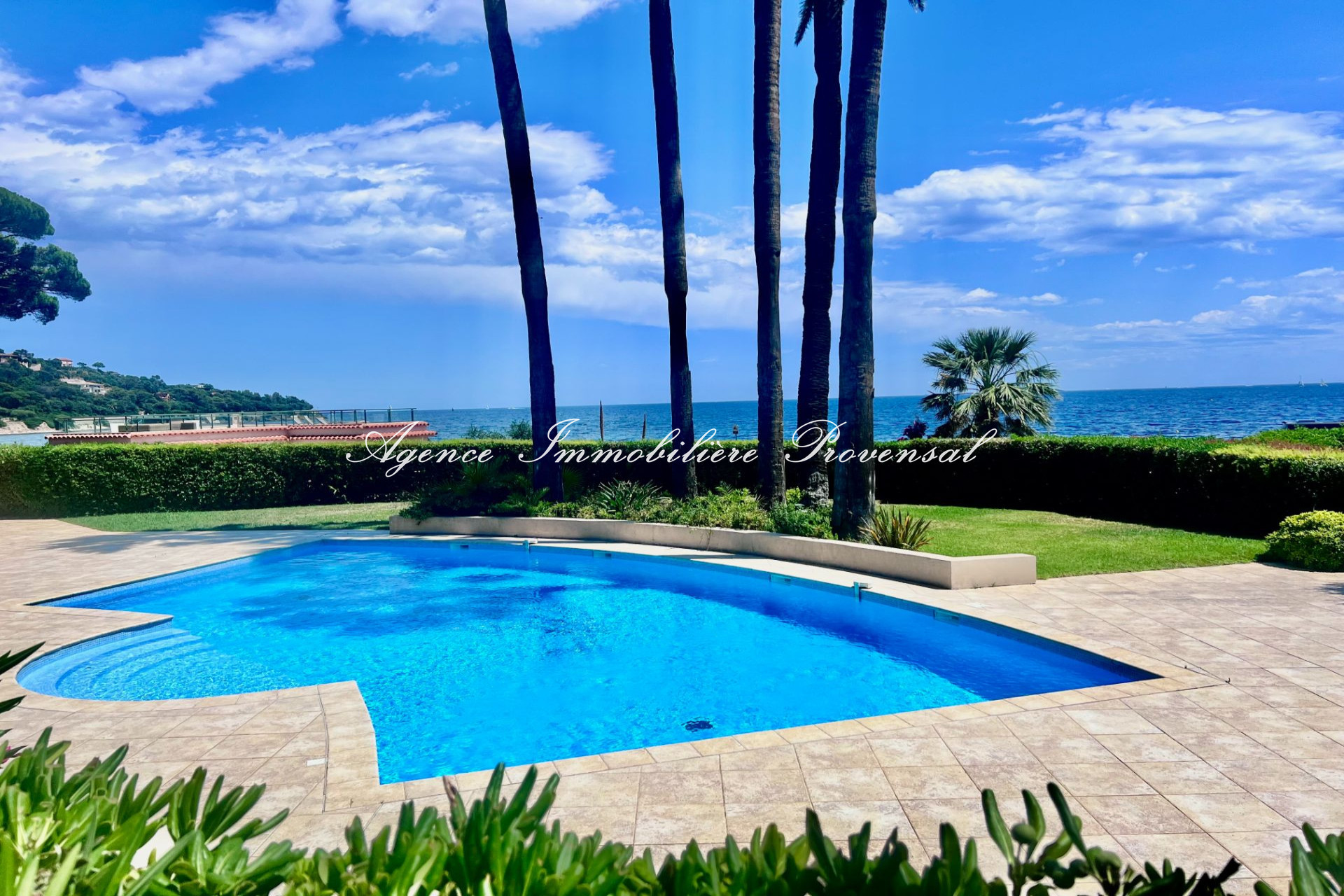 L’agence Provensal vous propose dans une résidence de standing avec piscine, terrain de boules et accès à la mer, ce superbe appartement 4 pièces de 105 m² avec très belle vue mer, terrasse de 54 m², grand jardin privatif d’environ 150 m², garage 20 m², 2 parkings privatifs et cave de 27 m²