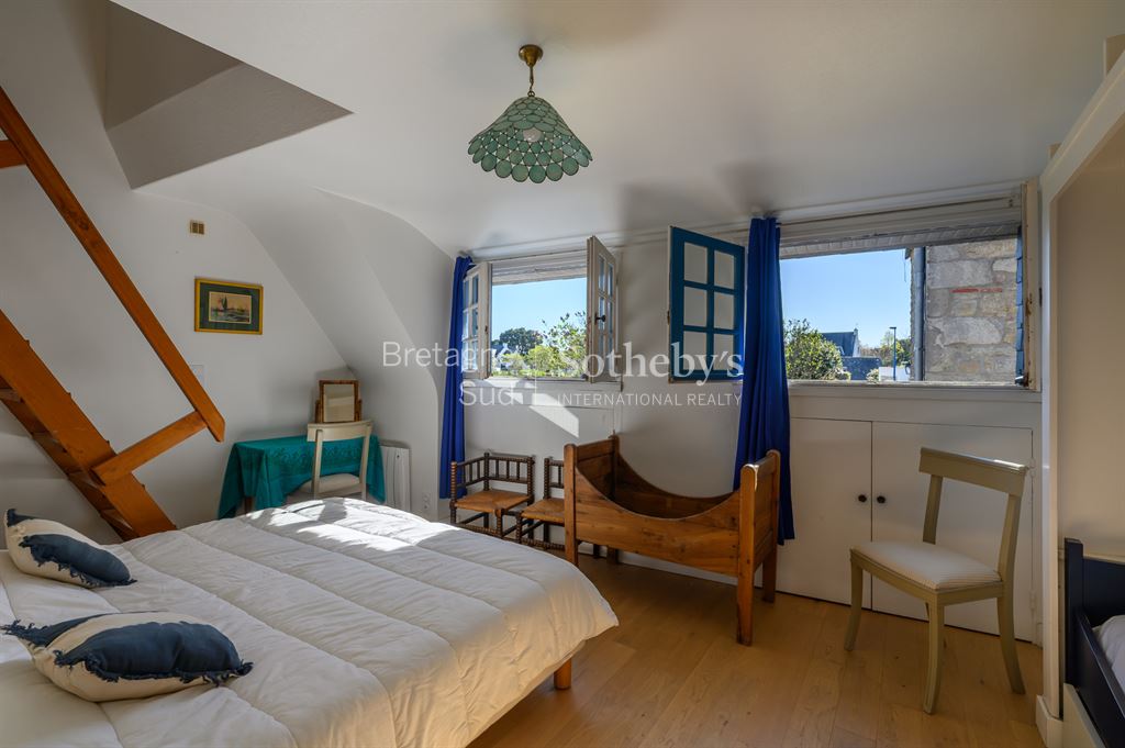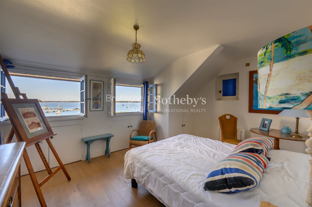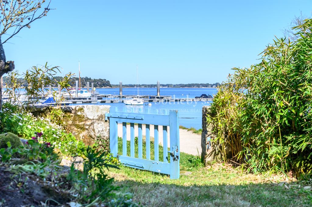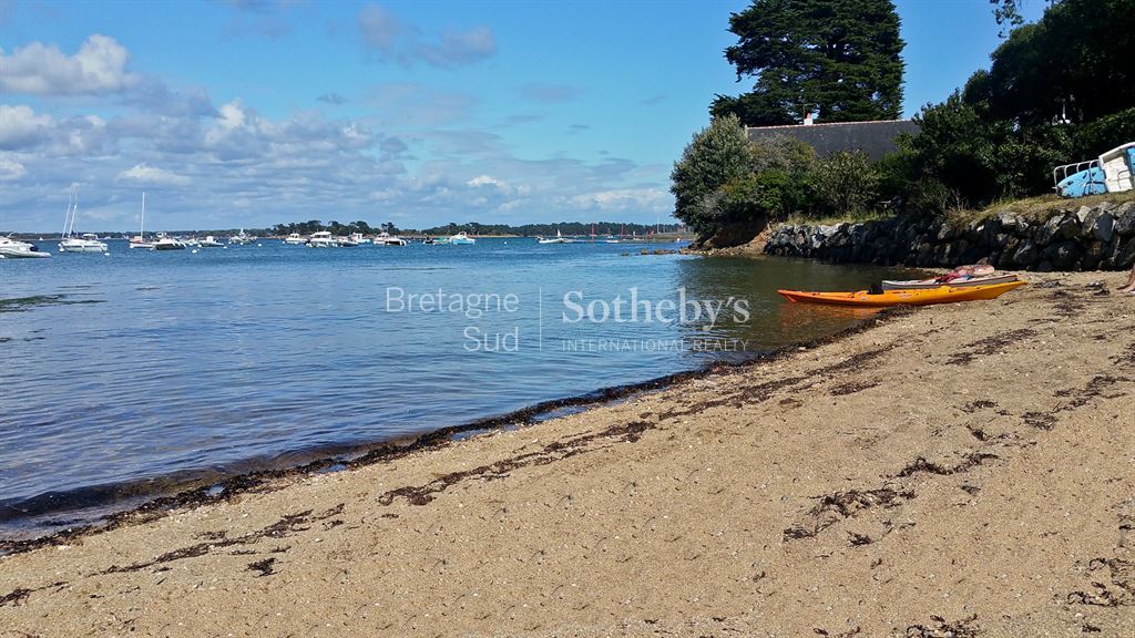 Située à l’entrée du Golfe du Morbihan, cette maison en pierre de 100 m² offre une vue dégagée sur la mer et un accès direct à celle-ci.