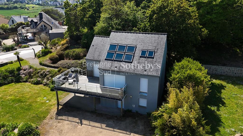 Bretagne Sud Sotheby’s International Realty vous propose cette maison contemporaine offrant une vue imprenable sur l’archipel de Bréhat. Située dans un quartier résidentiel calme, à seulement 100 mètres de la plage, cette propriété construite en 2008 bénéficie d’un emplacement privilégié et rare sur le littoral costarmoricain.
