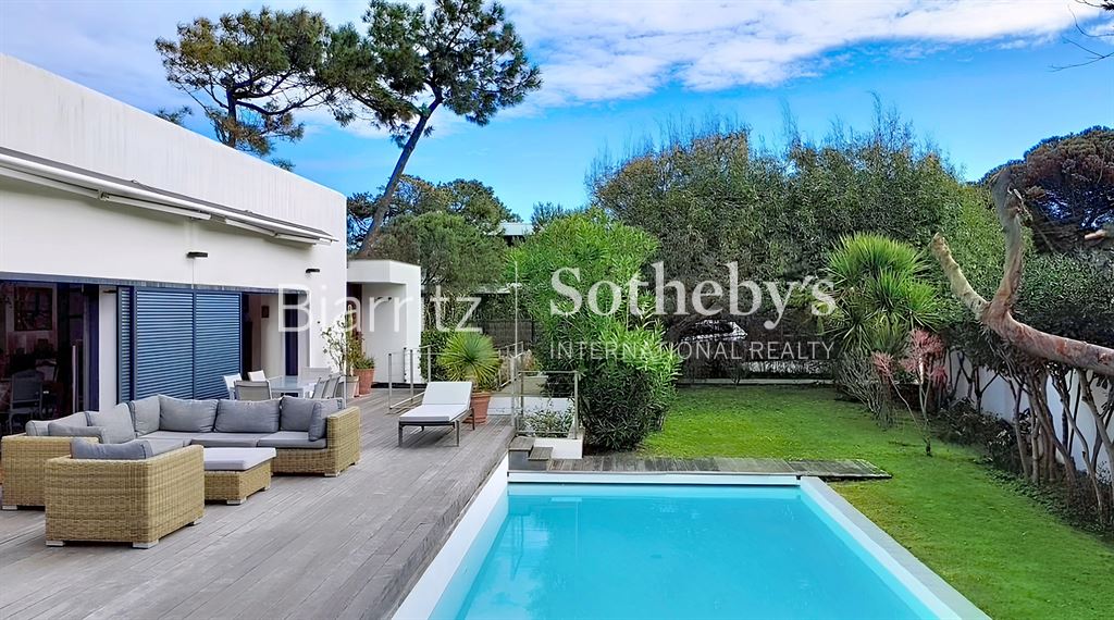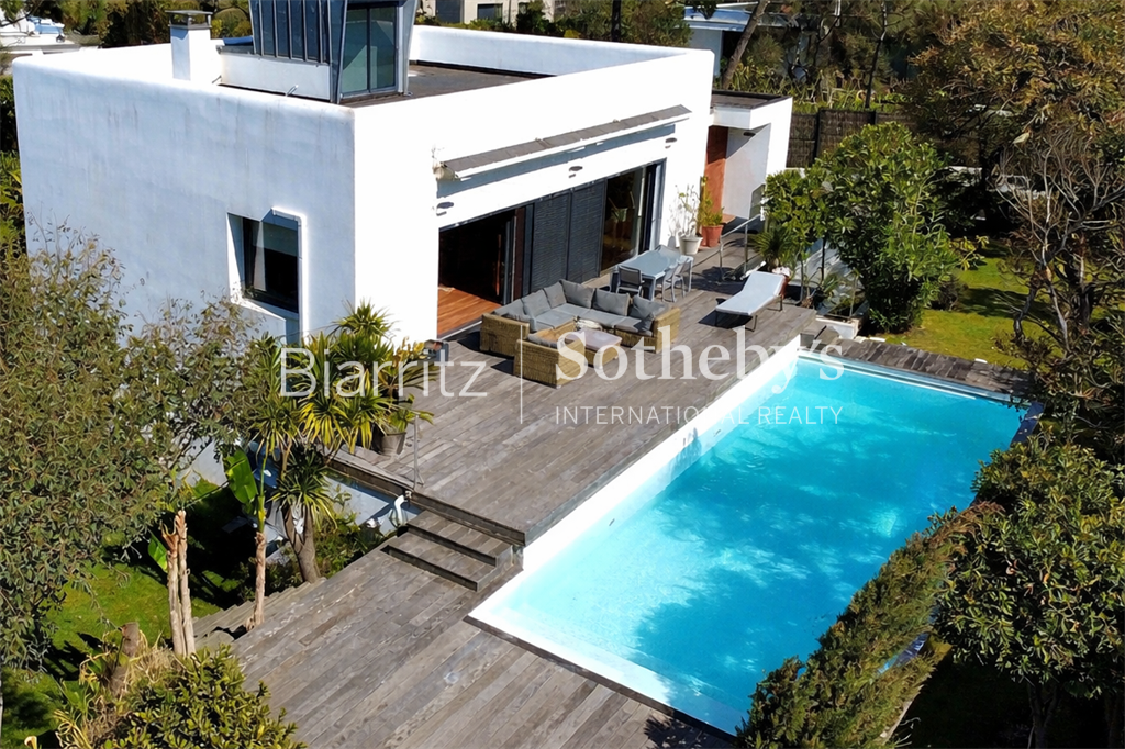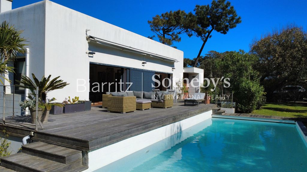 Villa d’architecte de 265 m², située à seulement 2 minutes à pied des plages, de l’océan et du golf, dans un environnement calme et recherché.