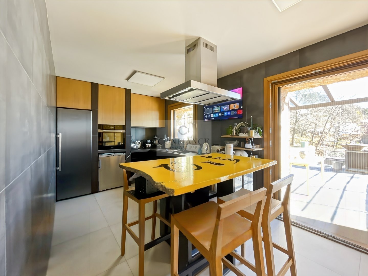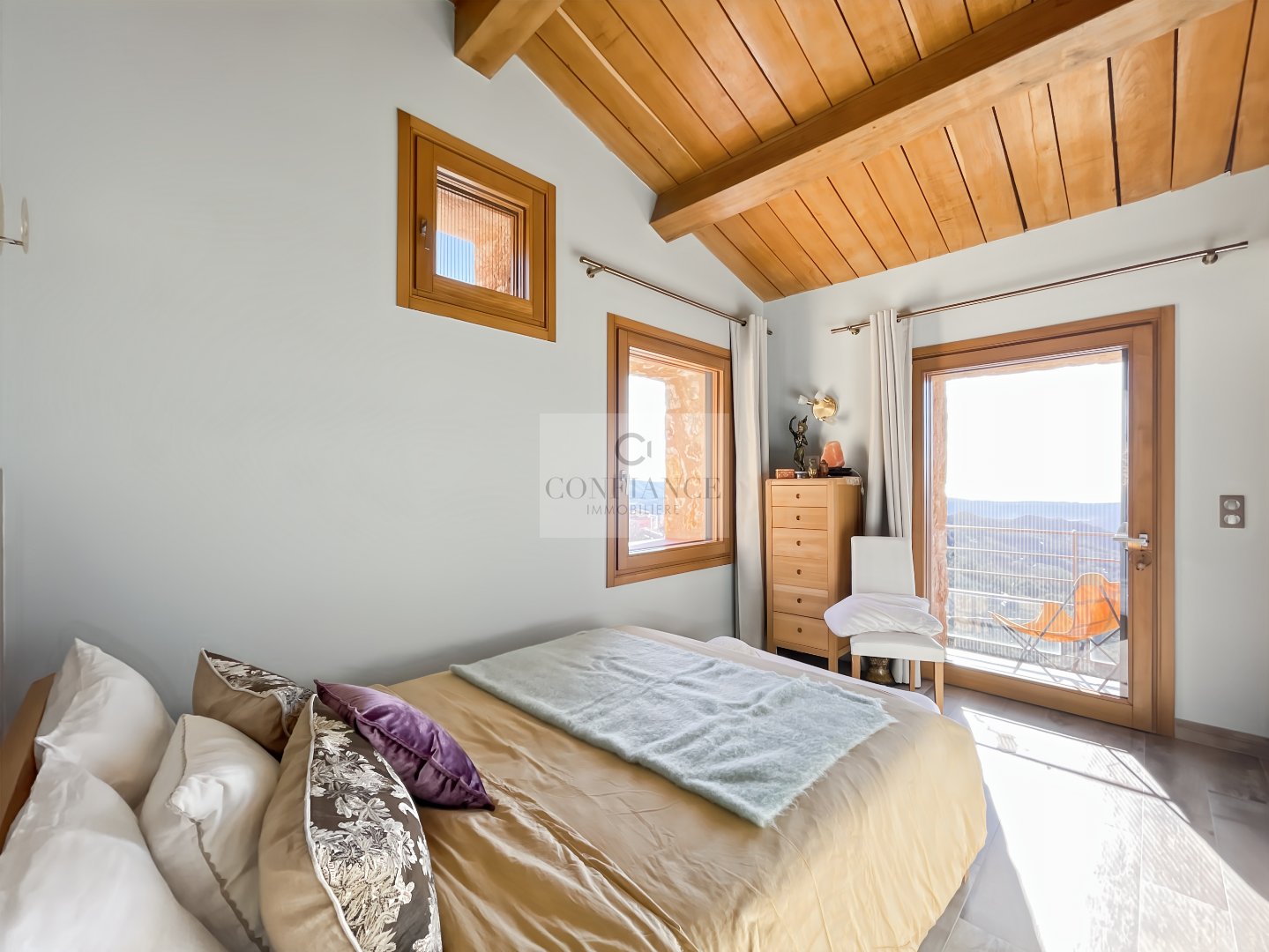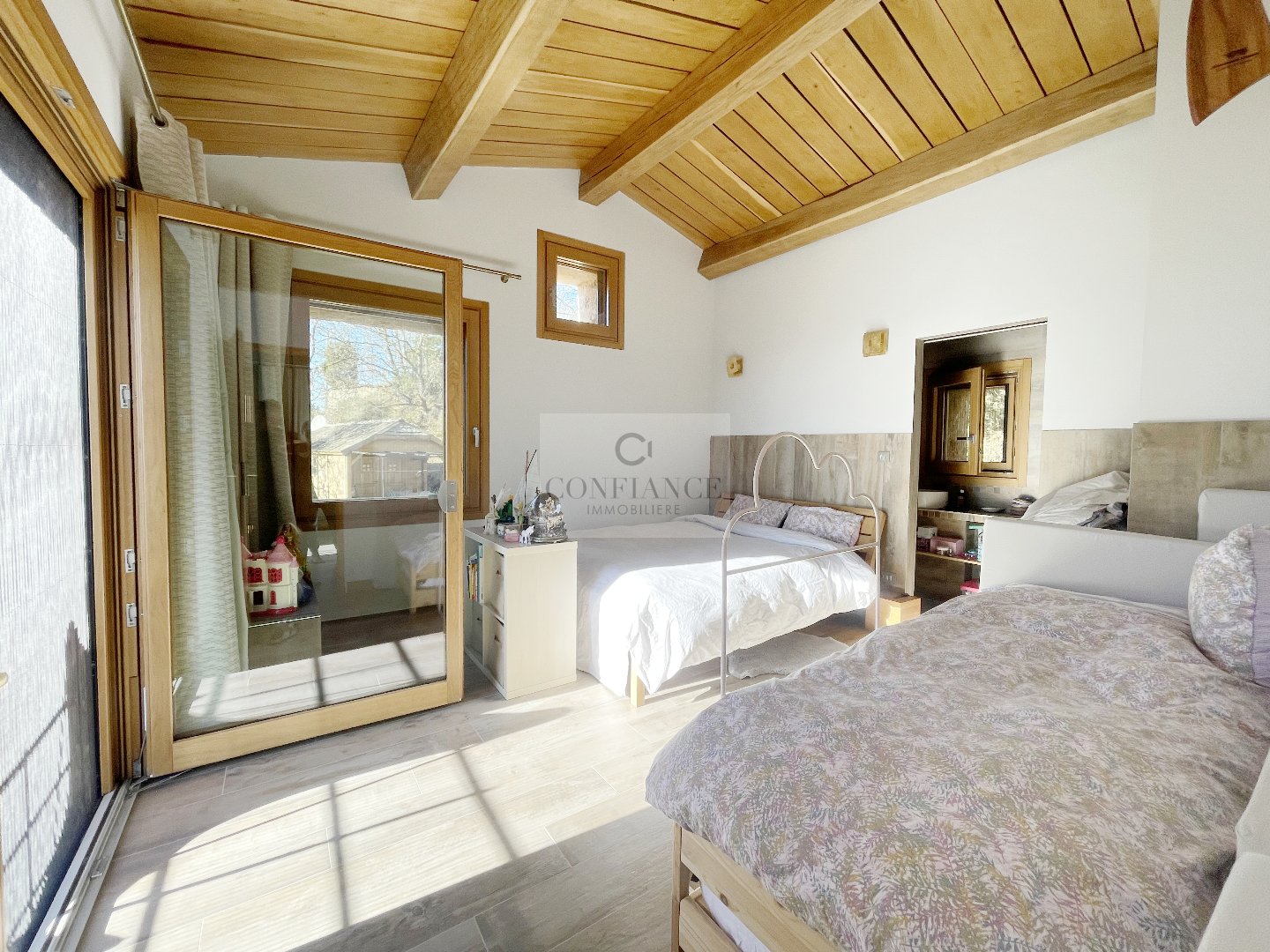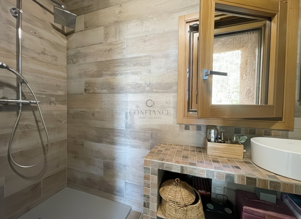 06830 REVEST-LES-ROCHES MAISON 4 PIECES 120 M² VUE MER PANORAMIQUE AVEC CHALET Située à 35 min de Carros, 45 min de l’aéroport de Nice et de l’autoroute A8, découvrez cette superbe villa individuelle 4 pièces de 120 m². Exposée plein Sud, elle bénéficie d’un ensoleillement optimal et d’une splendide vue mer panoramique. Implantée sur un terrain de 800 m², dans un environnement calme, cette propriété récente allie le charme de l’authenticité et le confort moderne. Elle se compose d’un séjour de 23 m² agrémenté d’un poêle à bois moderne en fonte, ouvrant sur une terrasse de 20 m² avec posssibilité d’extension en véranda, une cuisine aménagée et équipée ouvrant sur une terrasse de 50 m² avec piscine, trois chambres dont deux avec chacune salle de douche, vasque et wc, un dressing, une salle de bains avec baignoire balnéo, douche, vasque et wc, un cellier/buanderie, un wc indépendant. Le système de chauffage de la maison est assuré par une pompe à chaleur. Un garage et cinq stationnements complètent ce bien. À l’extérieur, un charmant chalet indépendant de 20 m² entièrement aménagé, comprenant un séjour et une salle d’eau complète, offrant un excellent potentiel de rendement en location saisonnière (type Airbnb). Taxe f. 778 € – Surface hab. 120 m² – DPE en cours. Honoraires à la charge du vendeur. Les informations sur les risques auxquels ce bien est exposé sont disponibles sur le site Géorisques http://www.georisques.gouv.fr Toute l’équipe Confiance Immobilière vous remercie.